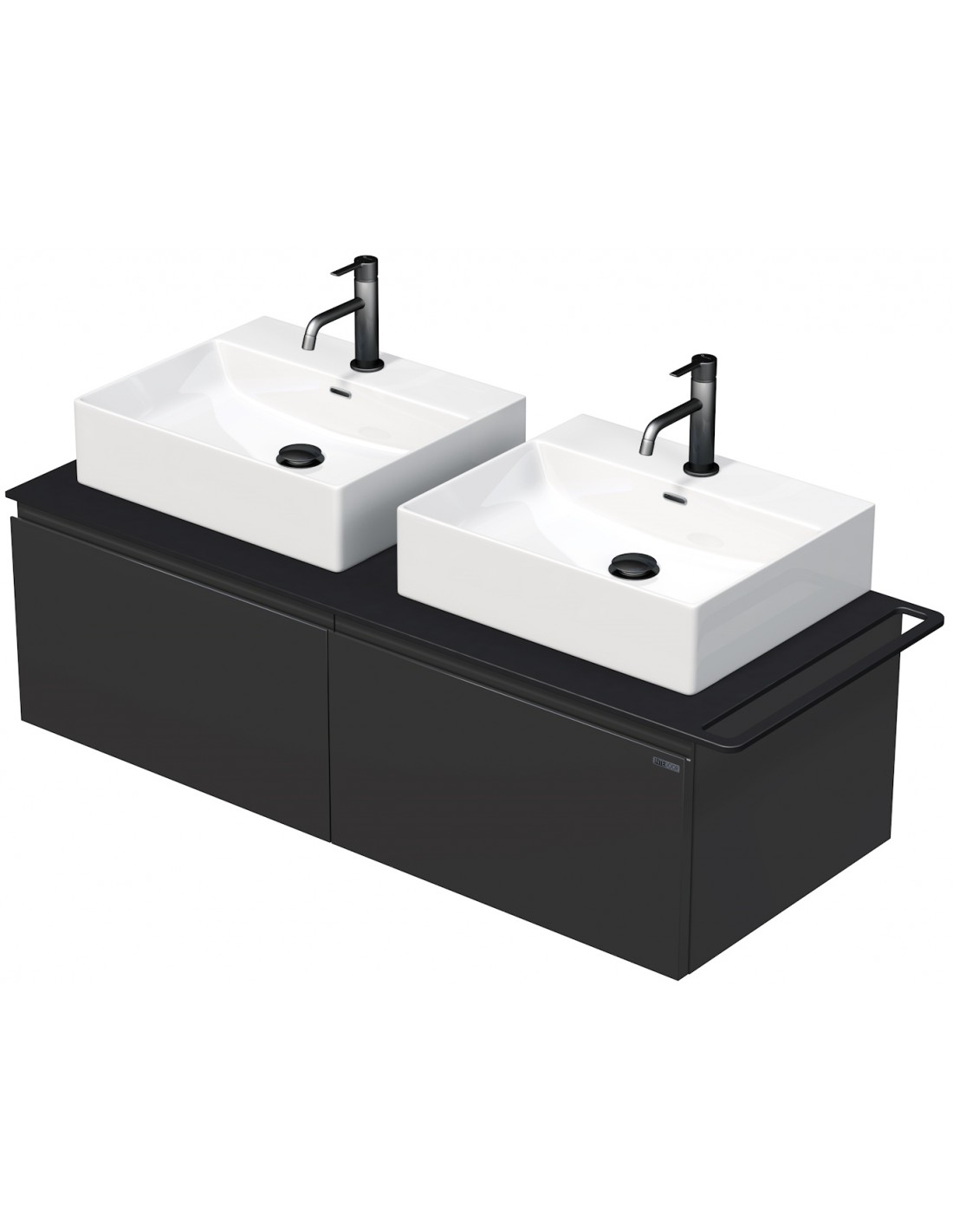 TARA Komplet badmiljø med 2 håndvaske B128 cm Keramik, HPL og MDF - Sort/Antracit højglans