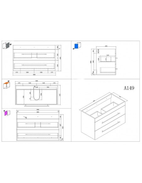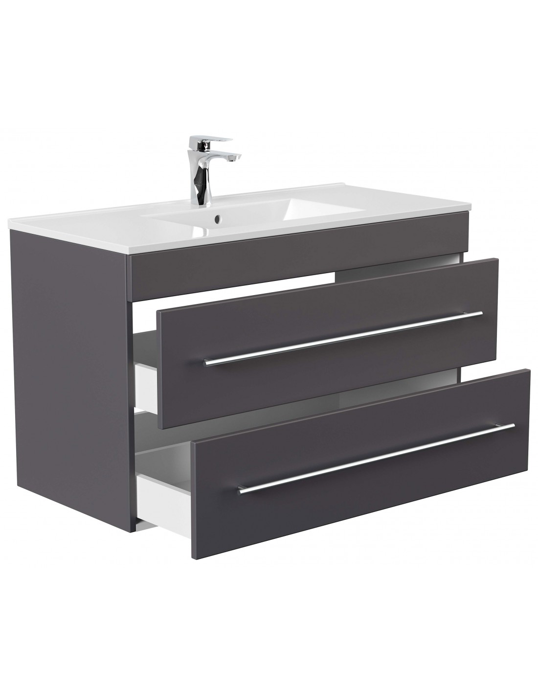 Aurora komplet badmiljø i mdf og keramik H61,7 x B101 cm - Antracit højglans