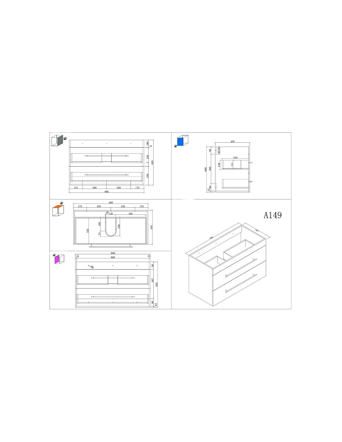 Komplet badmiljø med vask, udført i et design af mdf og keramik. Badmiljøet måler 61,7 cm i højden og 101 x 47,5 cm i bredde og dybde.