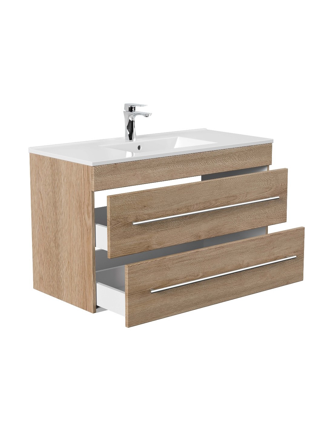 Aurora komplet badmiljø i mdf og keramik H61,7 x B101 cm - Sonoma eg