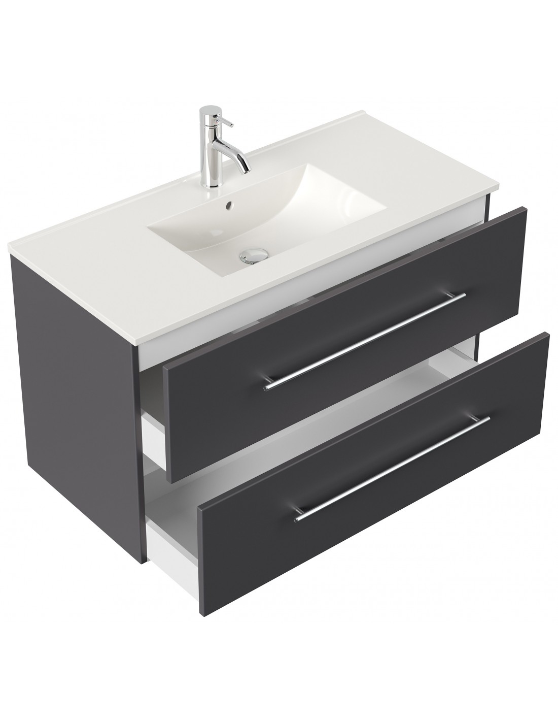 Homeline komplet badmiljø i mdf og mineralsten H54 x B100 cm - Antracit højglans