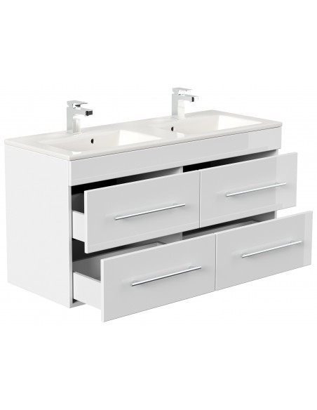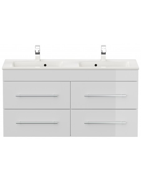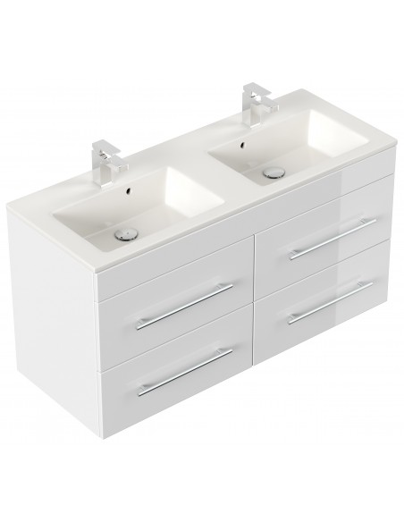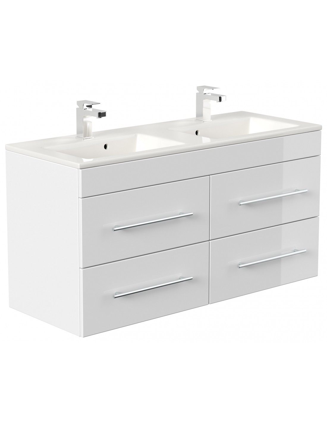 Homeline dobbelt komplet badmiljø i mdf og mineralsten H57 x B120 cm - Hvid højglans