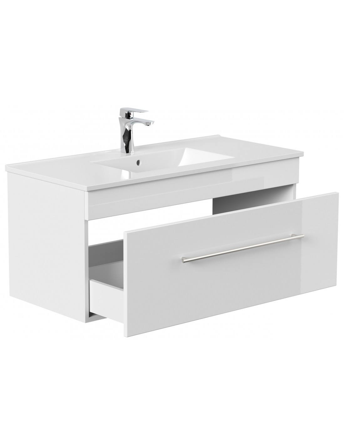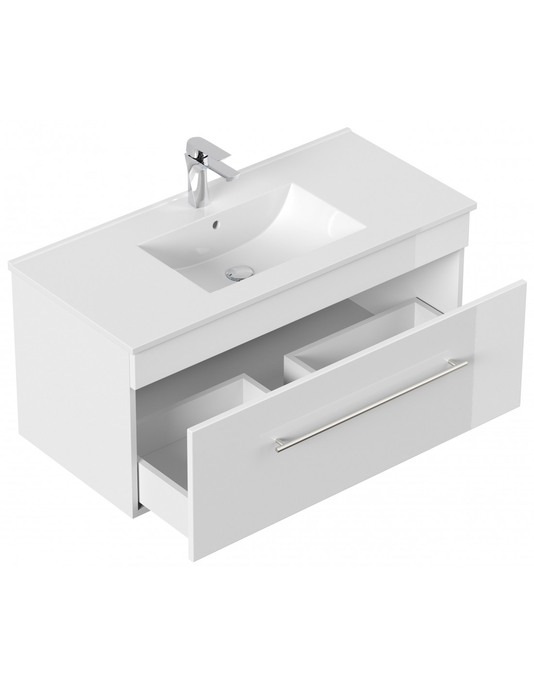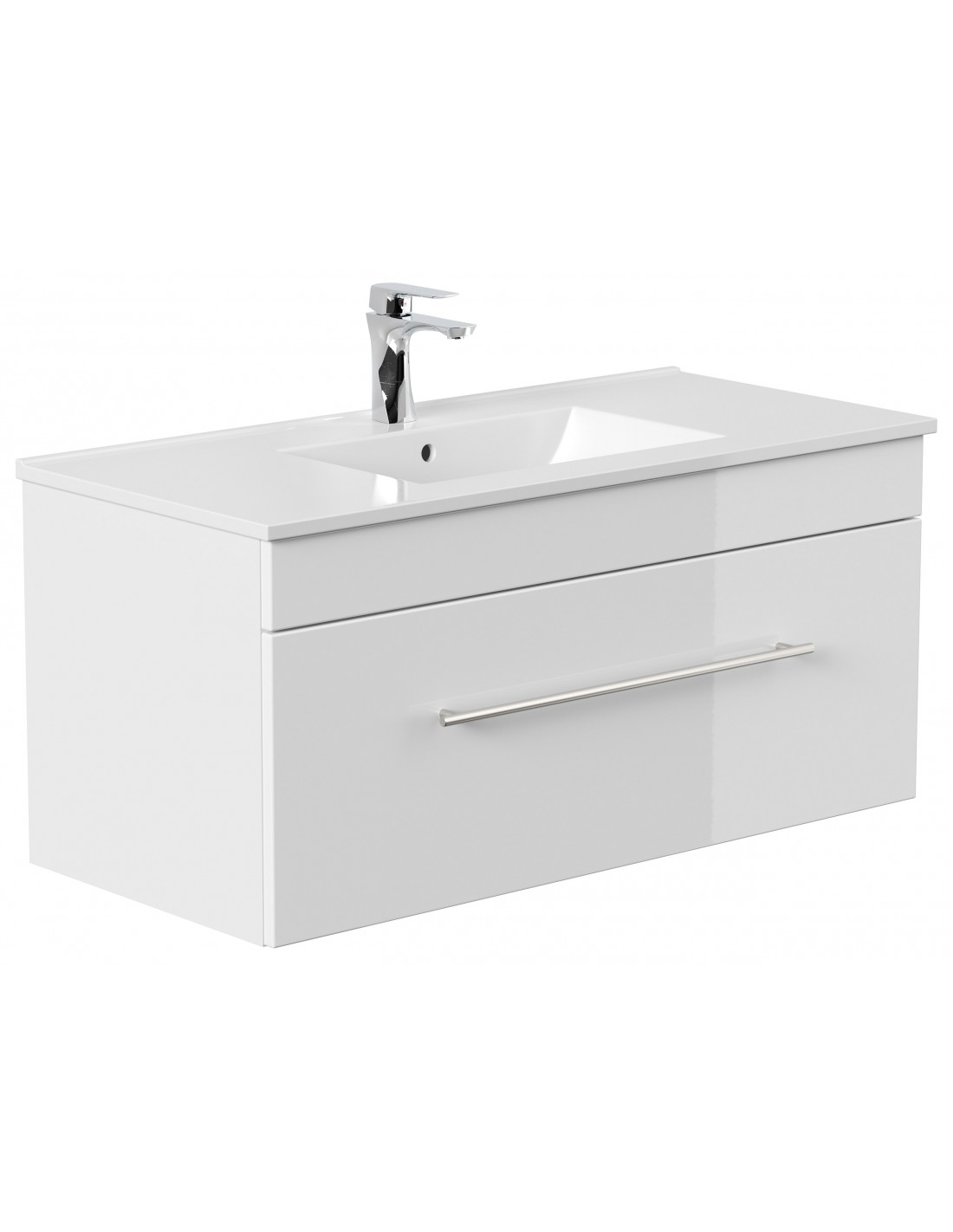 Viva komplet badmiljø i mdf og mineralsten H49,7 x B100 cm - Hvid højglans