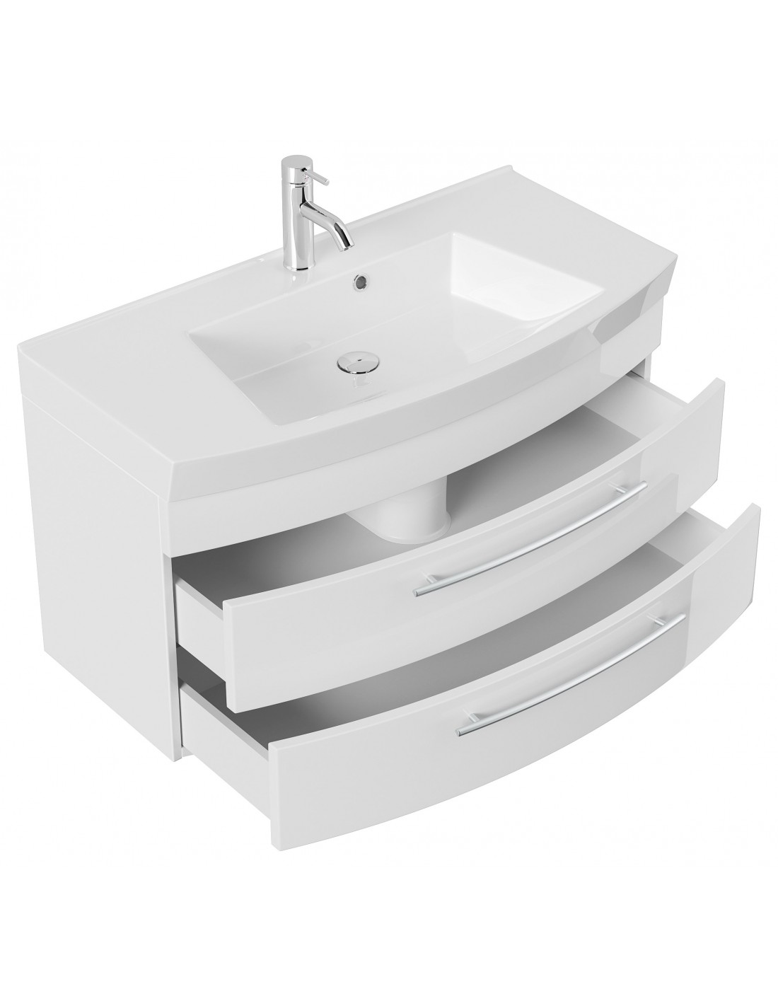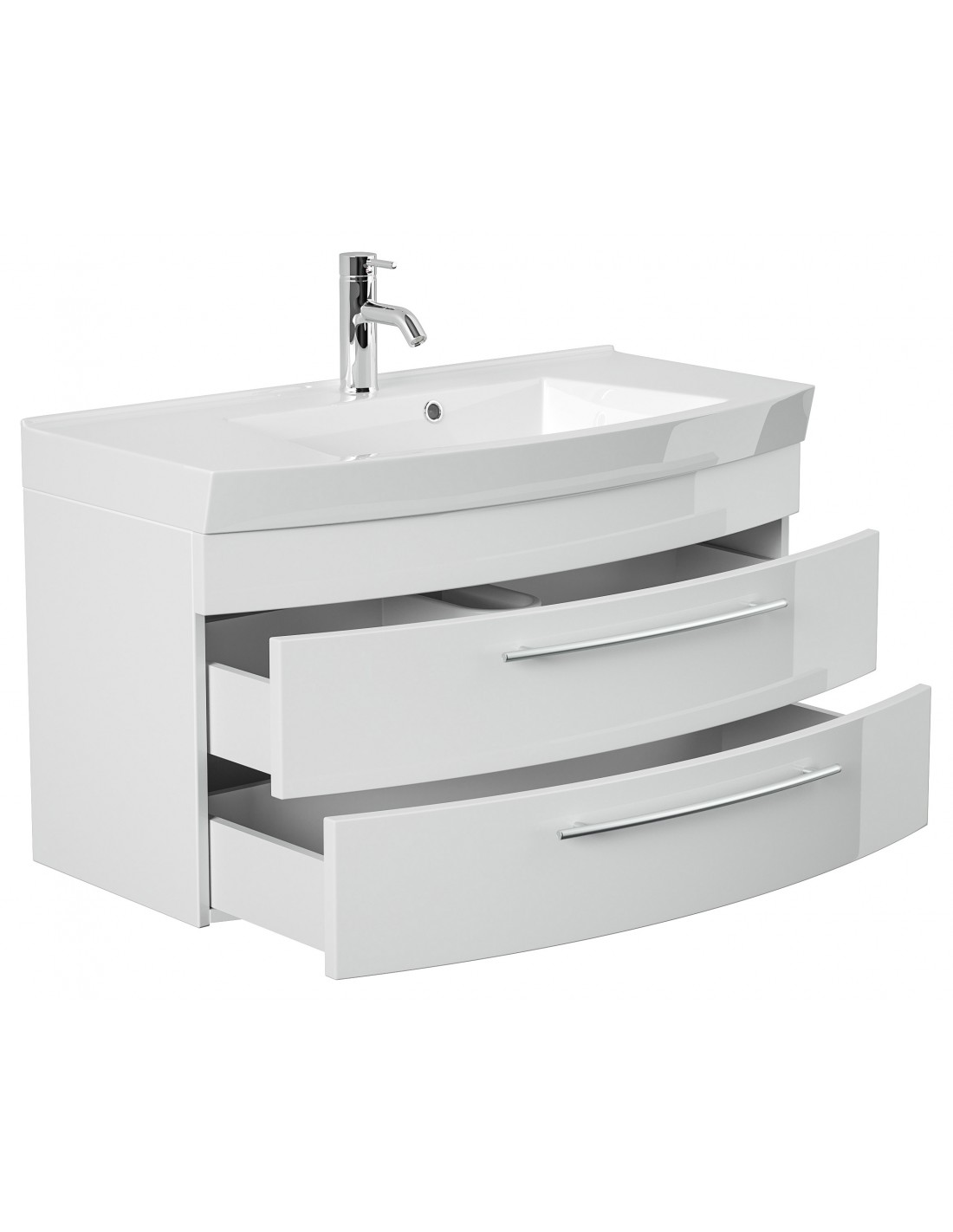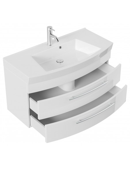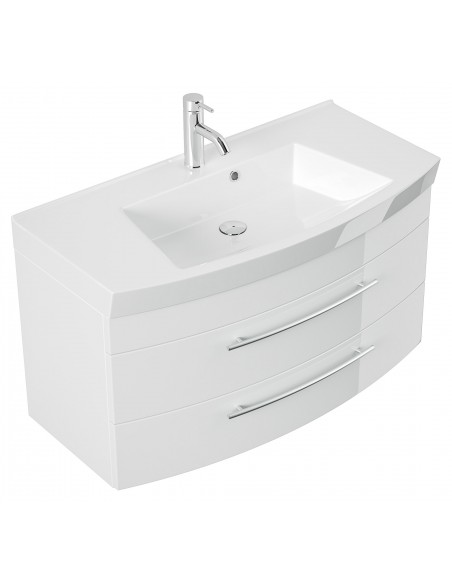 Luna komplet badmiljø i mdf og mineralsten H57,2 x B100,5 cm - Hvid højglans