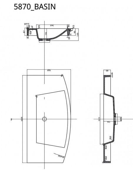 Komplet badmiljø med vask, udført i et design af mdf og mineralsten. Badmiljøet måler 57,2 cm i højden og 100,5 x 50,2 cm i bredde og dybde.