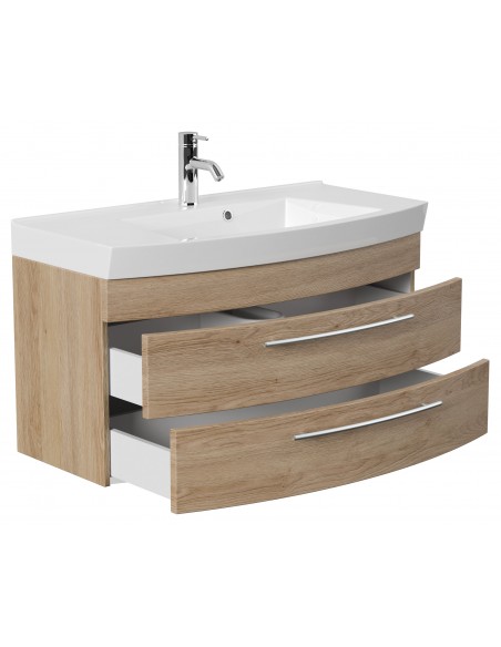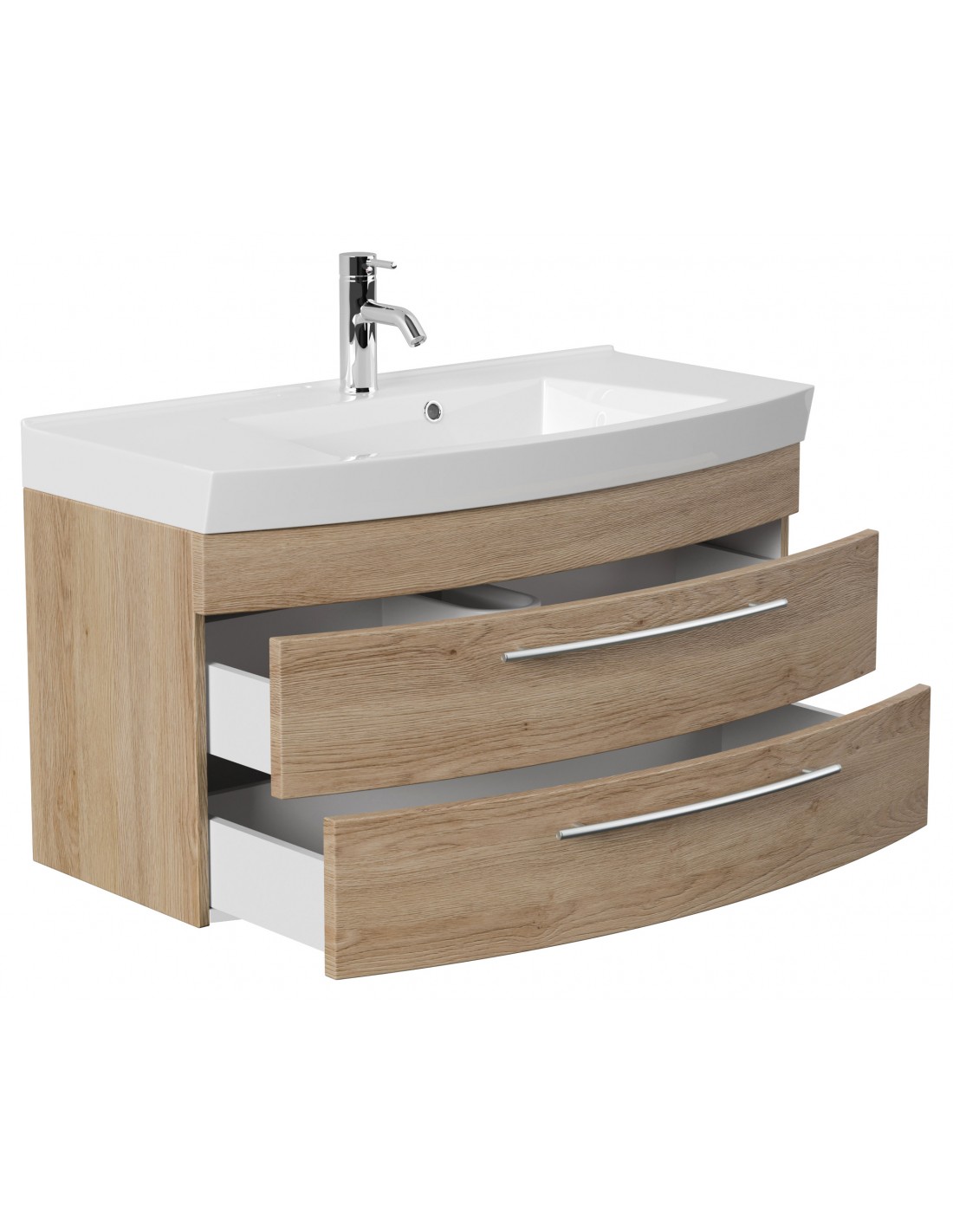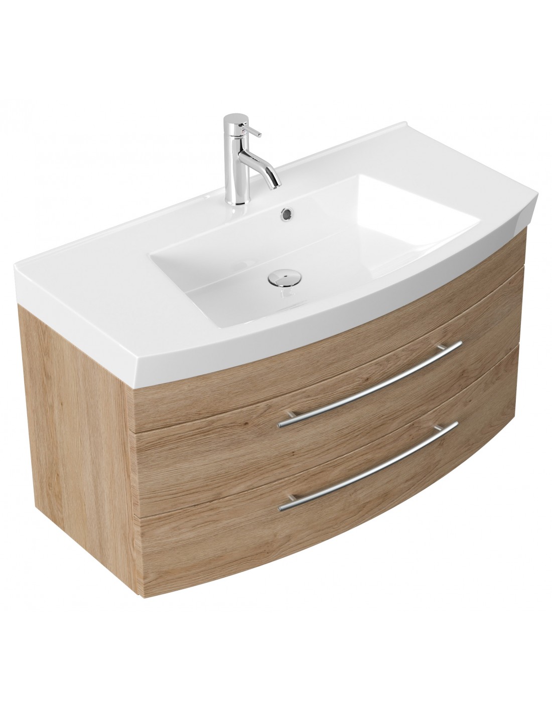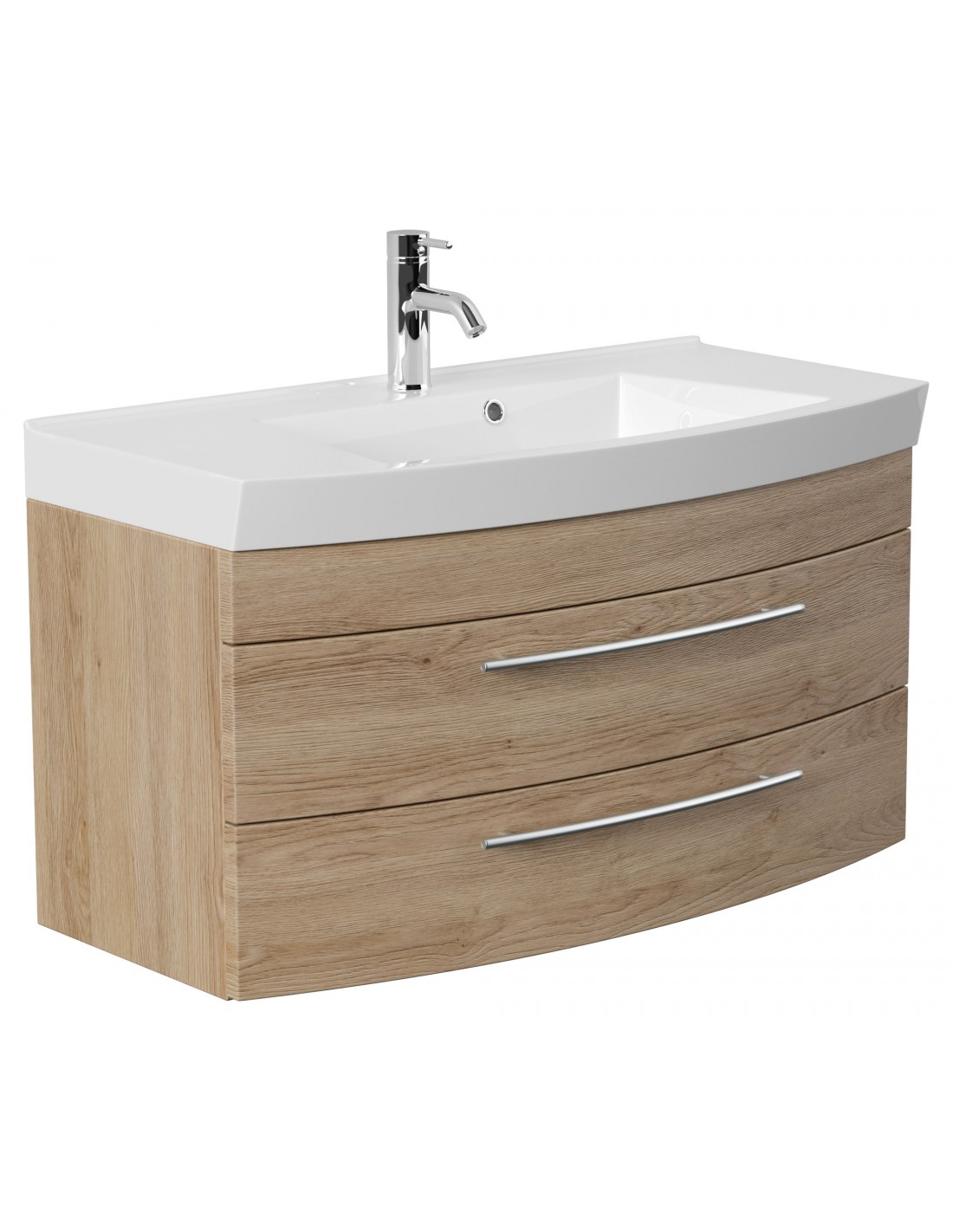 Luna komplet badmiljø i mdf og mineralsten H57,2 x B100,5 cm - Sonoma eg