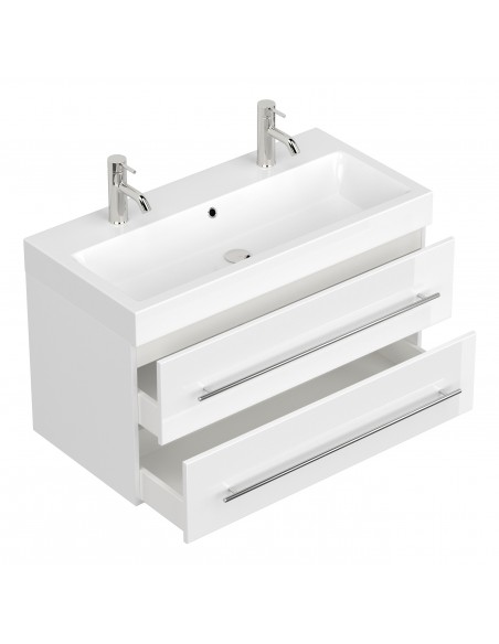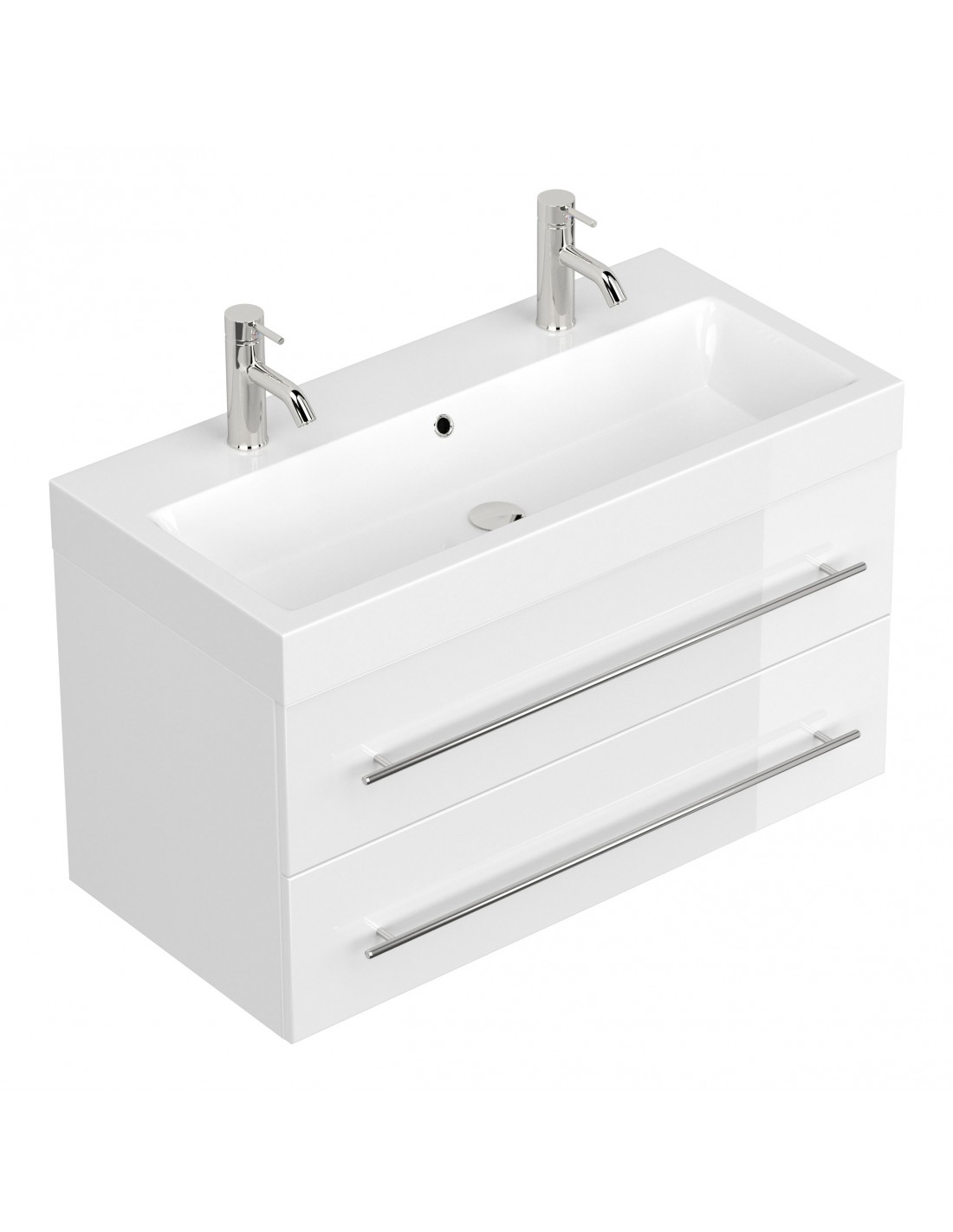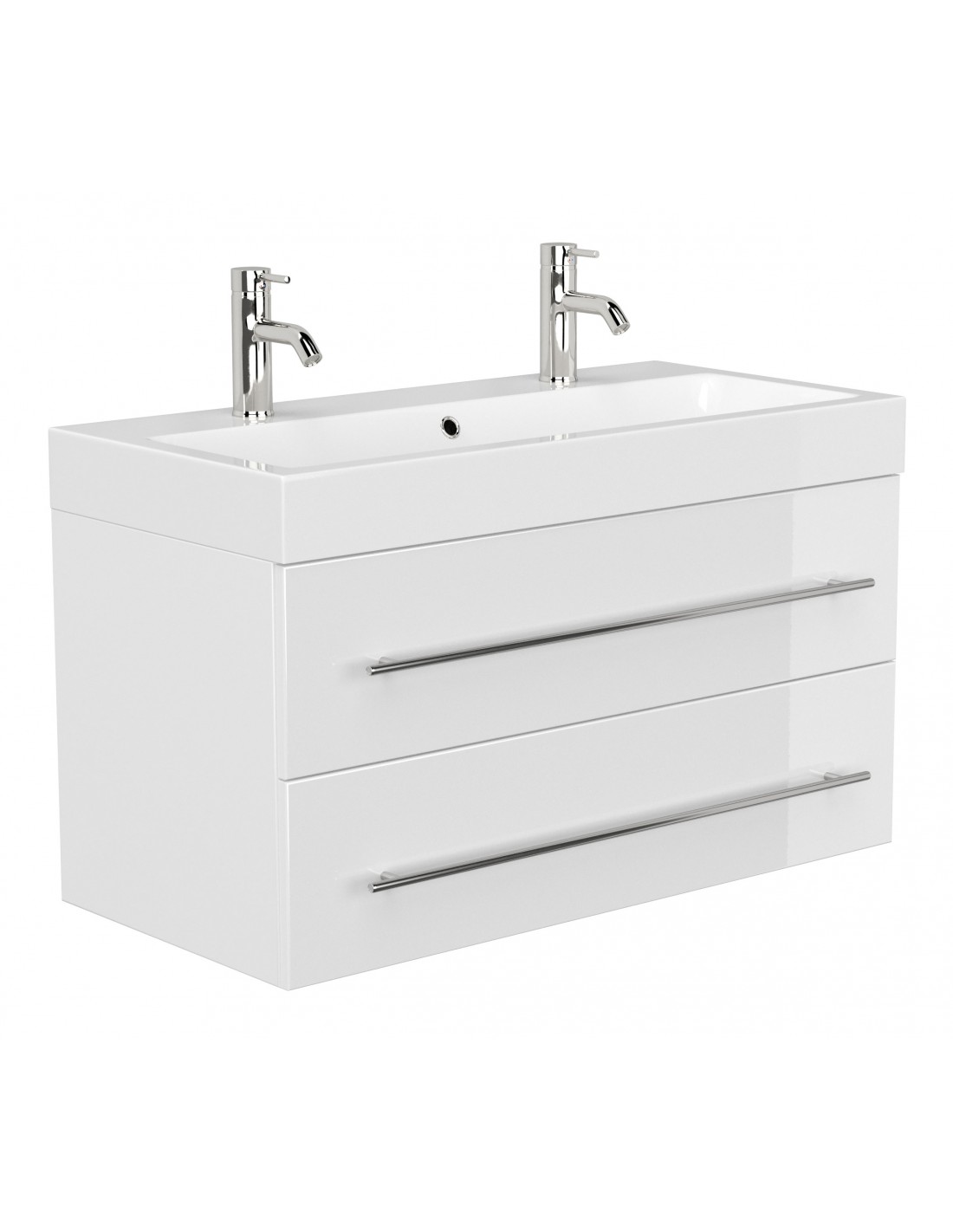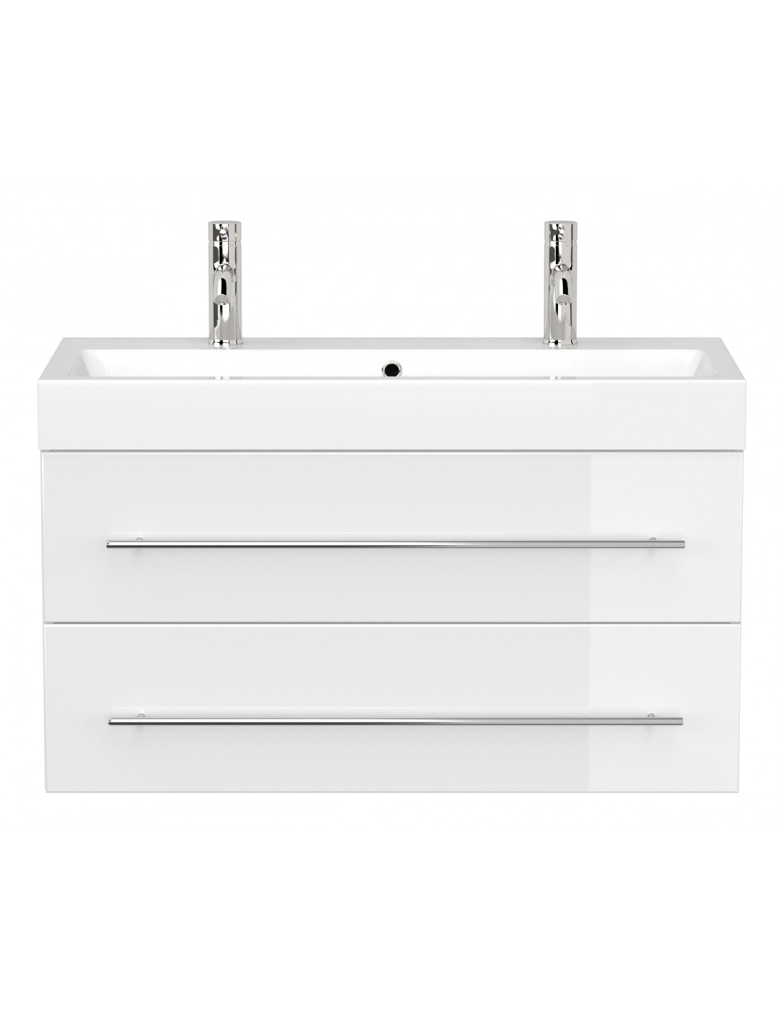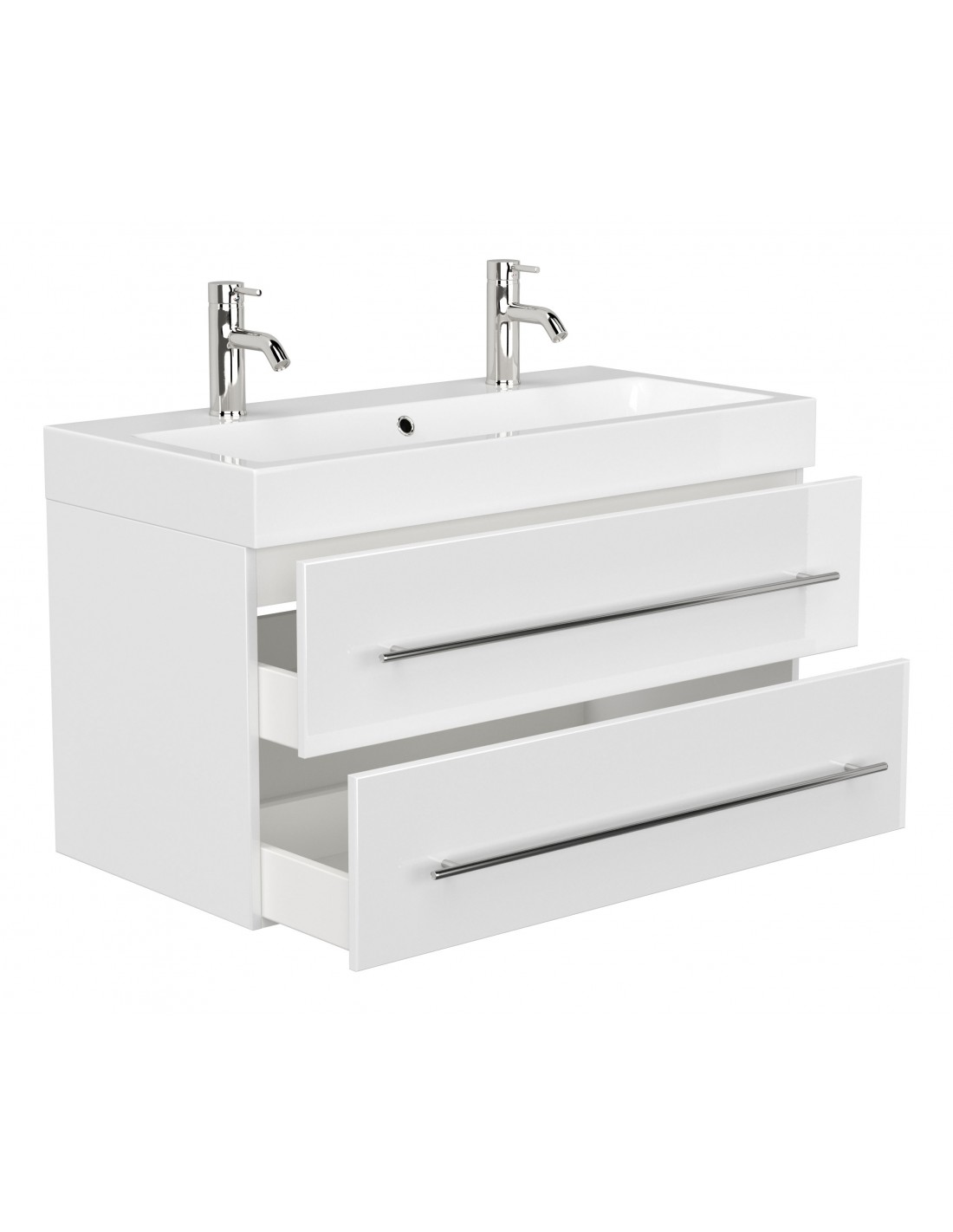 Livono komplet badmiljø i mdf og mineralsten H60 x B100,6 cm - Hvid højglans