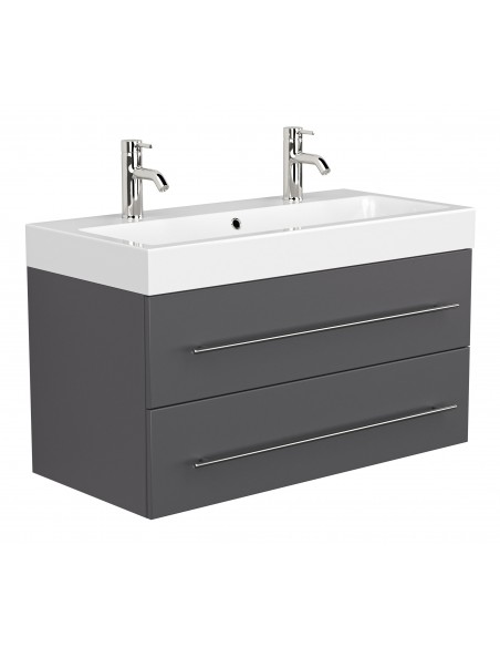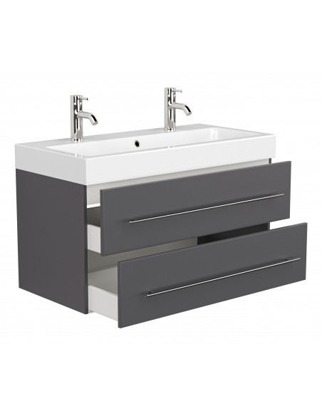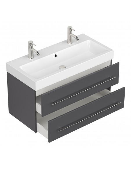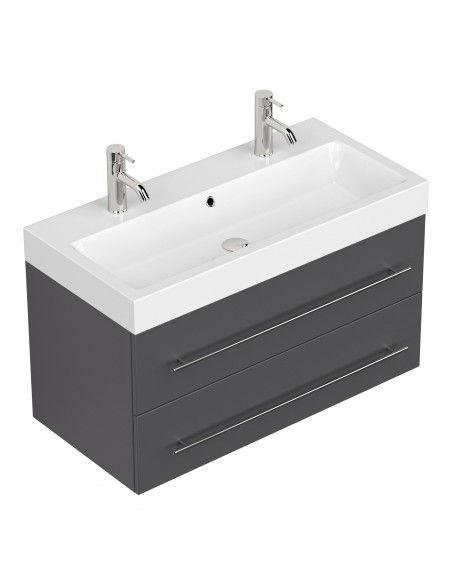 Livono komplet badmiljø i mdf og mineralsten H60 x B100,6 cm - Antracit højglans