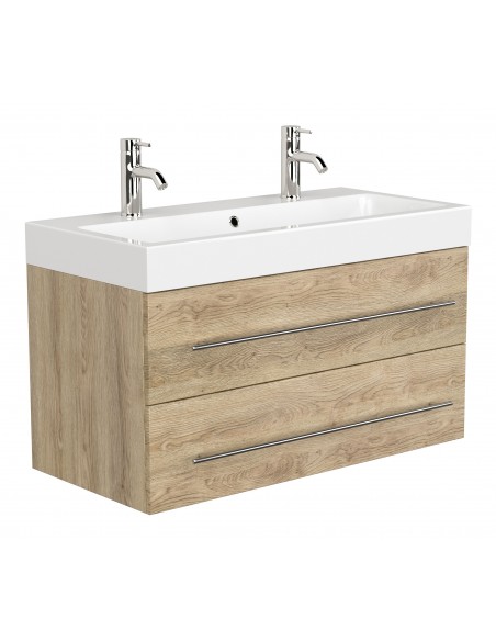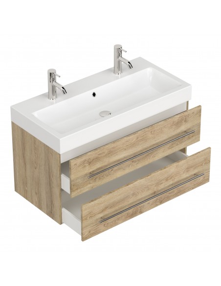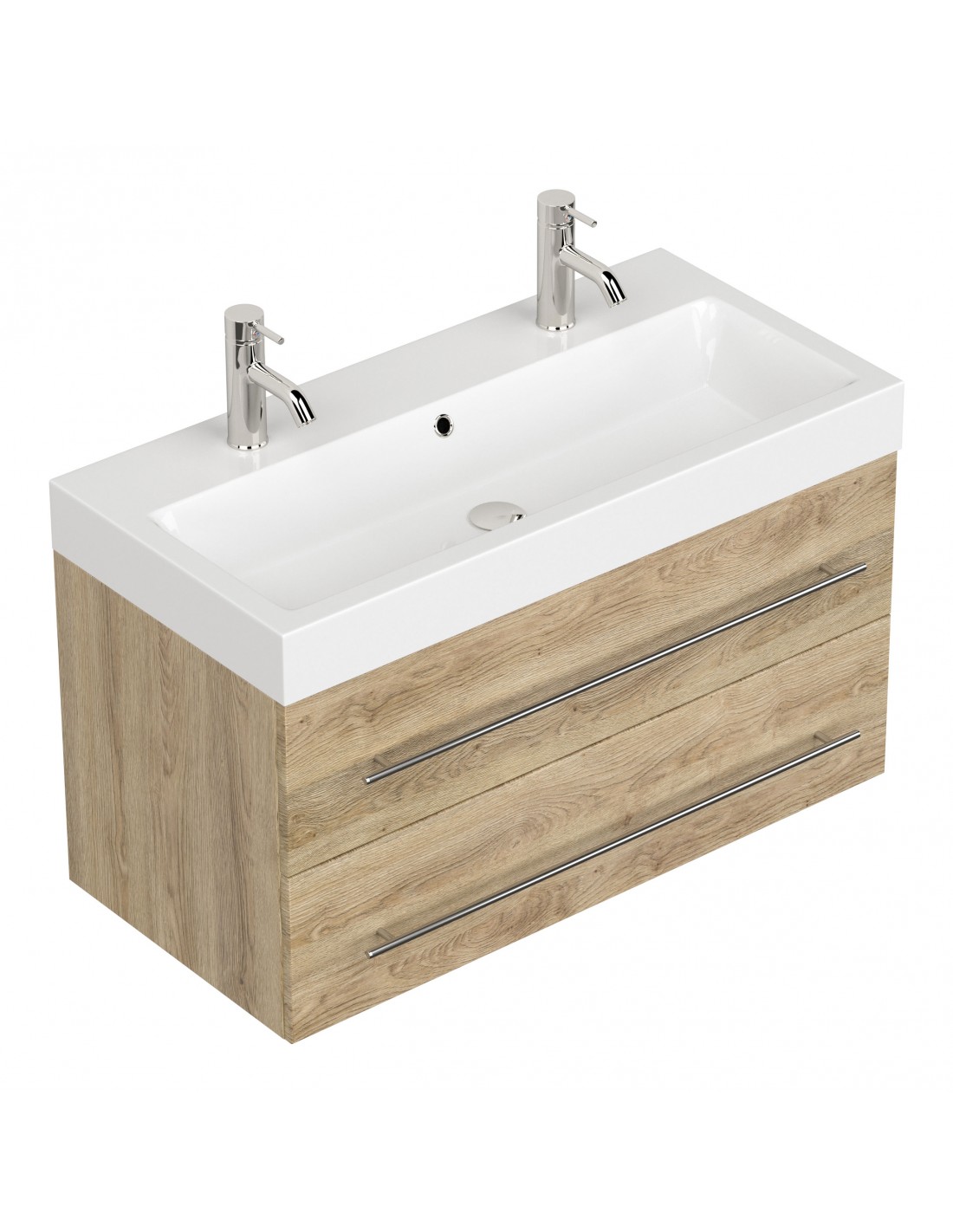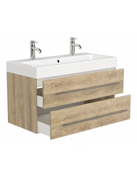 Livono komplet badmiljø i mdf og mineralsten H60 x B100,6 cm - Sonoma eg