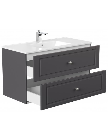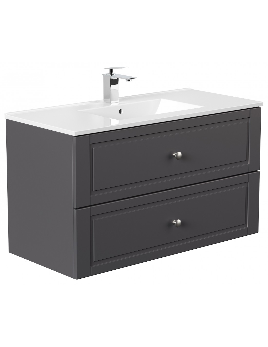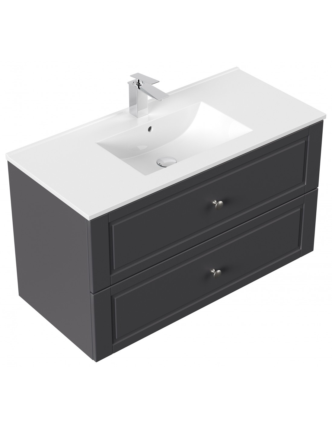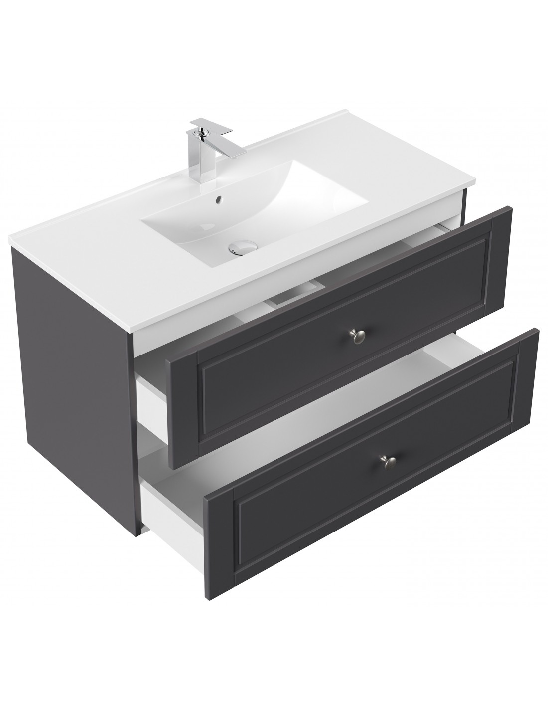 Homeline Cottage komplet badmiljø i mdf og mineralsten H56,1 x B101 cm - Antracit højglans