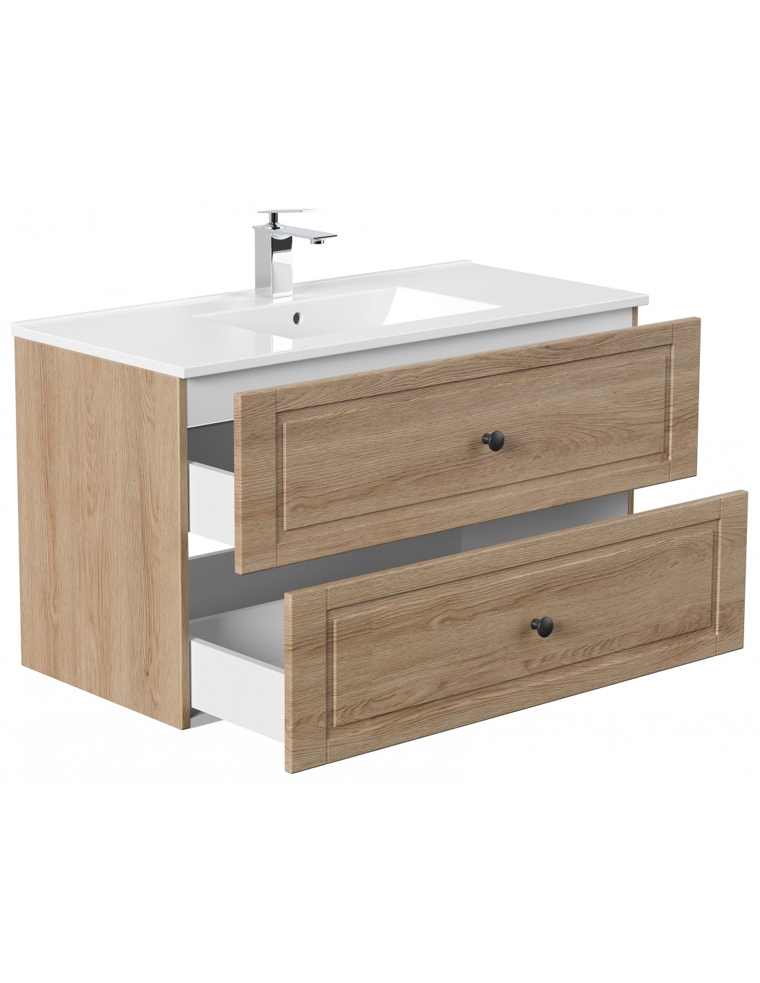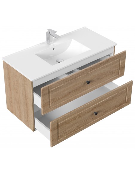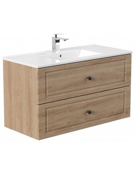 Homeline Cottage komplet badmiljø i mdf og mineralsten H56,1 x B101 cm - Sonoma eg
