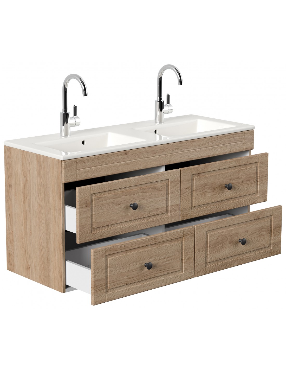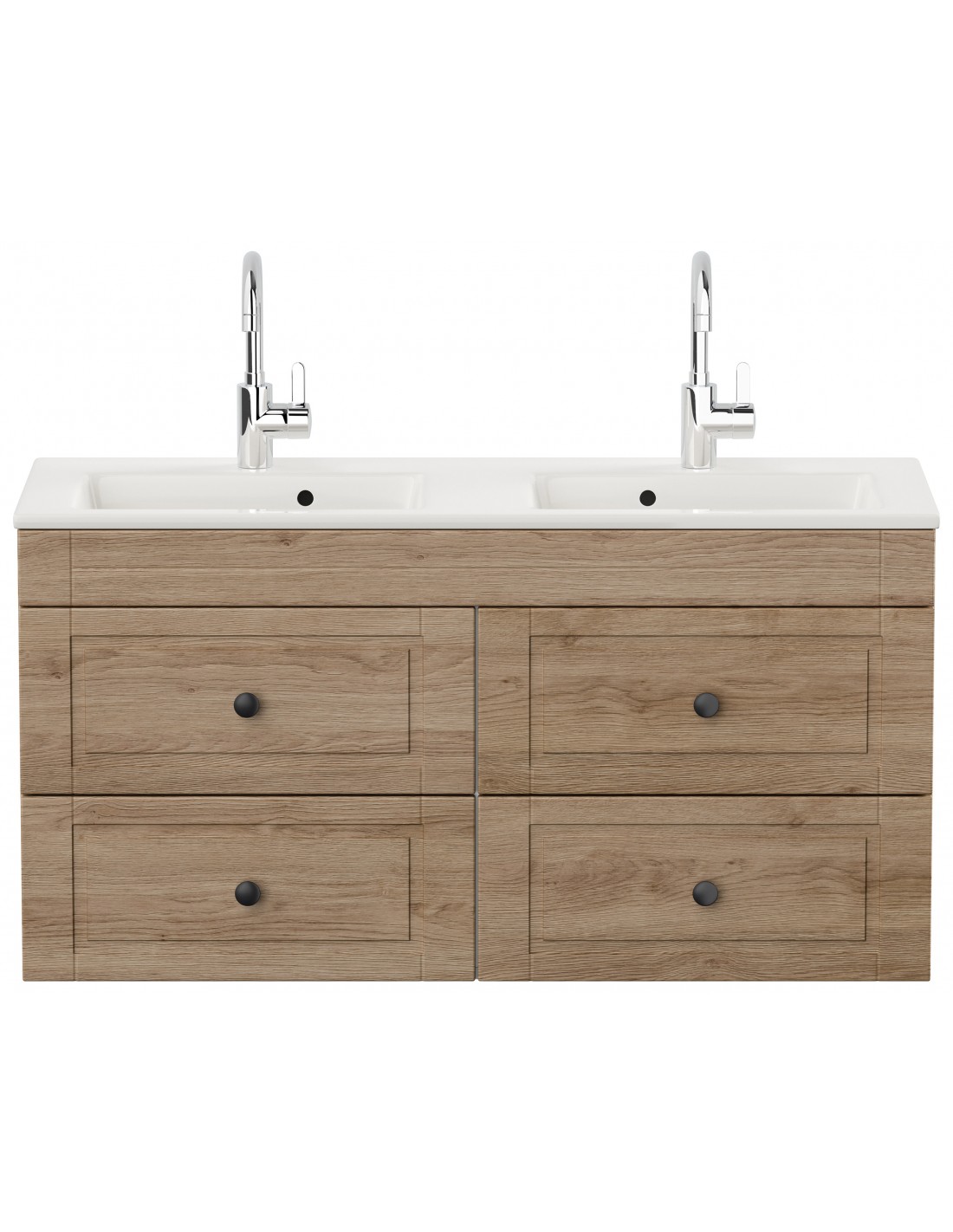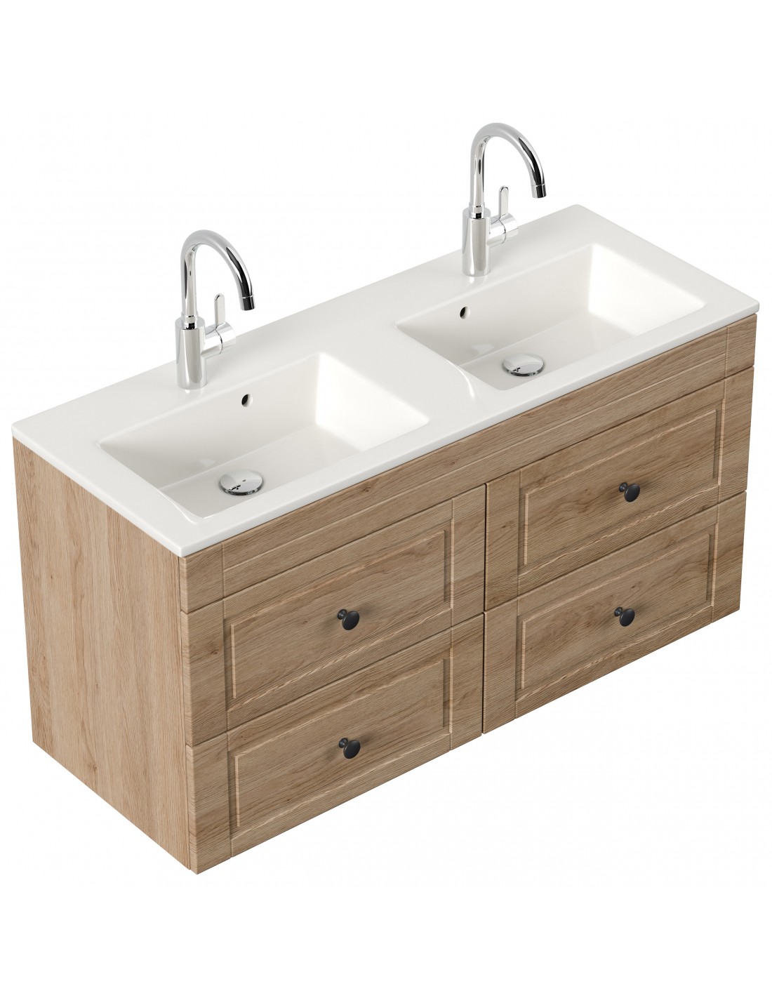 Argos Cottage dobbelt komplet badmiljø i mdf og mineralsten H60 x B120 cm - Sonoma eg