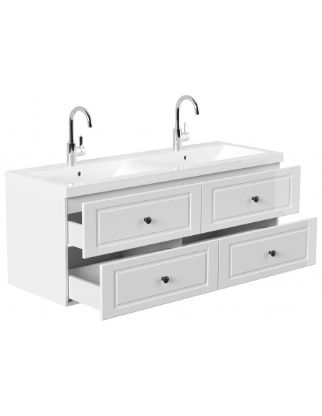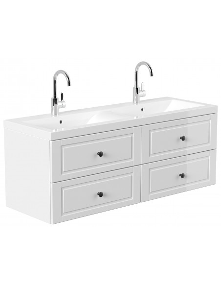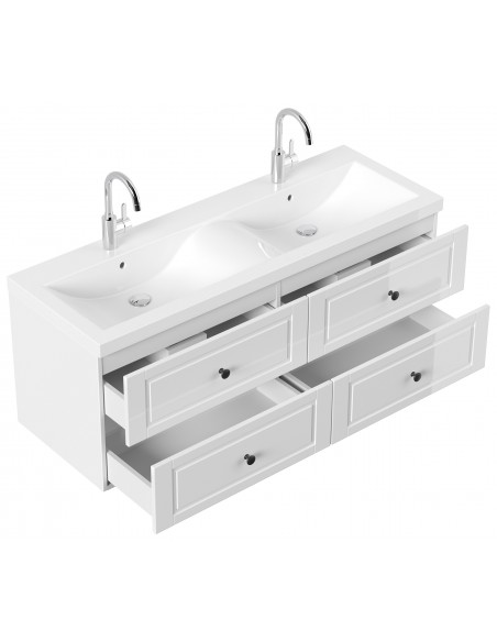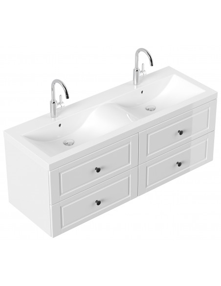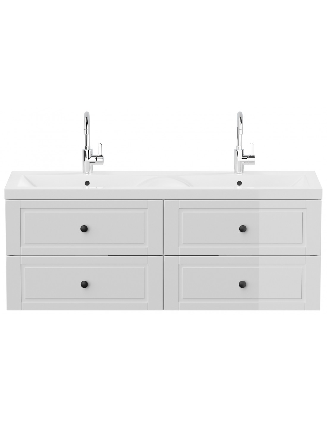 Aurelion Cottage dobbelt komplet badmiljø i mdf og mineralsten H56,5 x B143,4 cm - Hvid højglans
