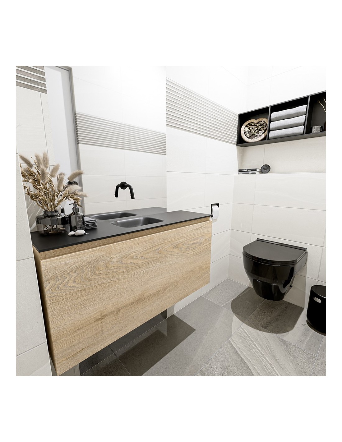 OLAN Komplet badmiljø centreret håndvask B100 cm MDF - Vasket eg/Sort