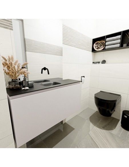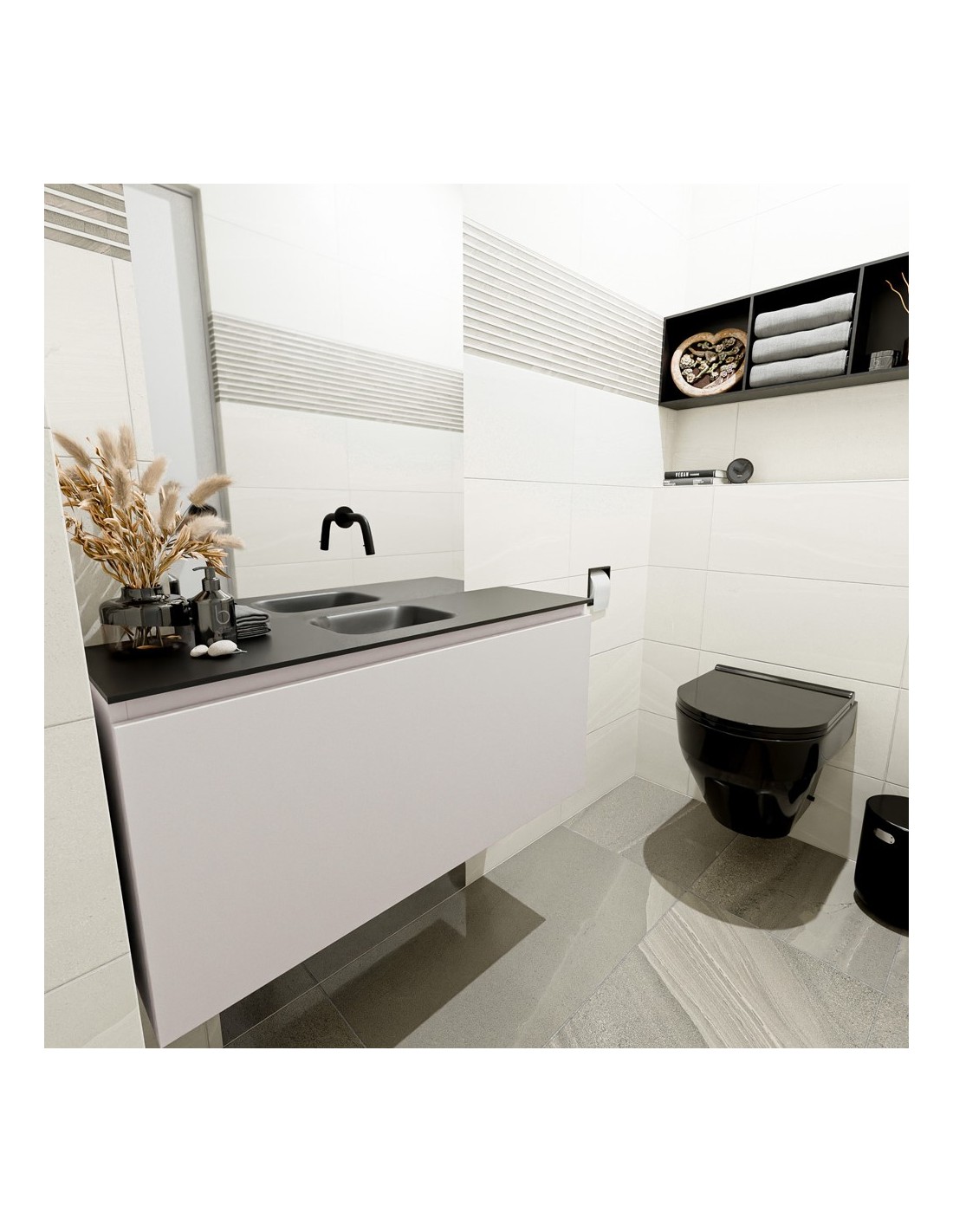OLAN Komplet badmiljø centreret håndvask B100 cm MDF - Linned/Sort