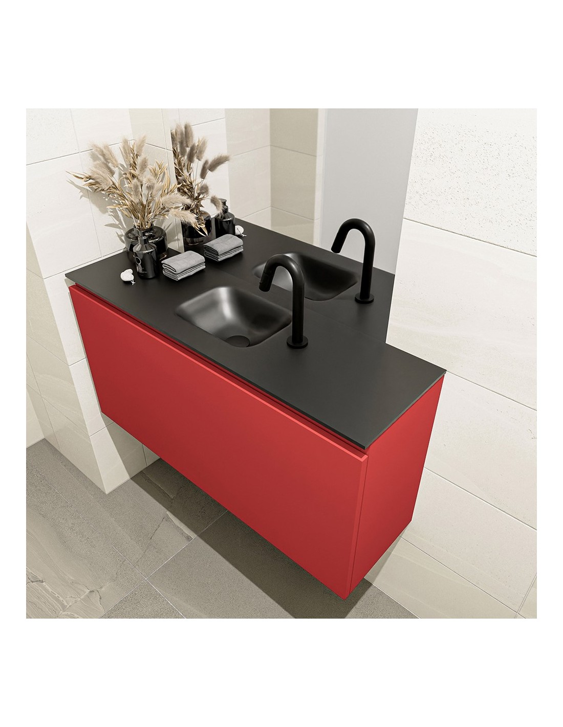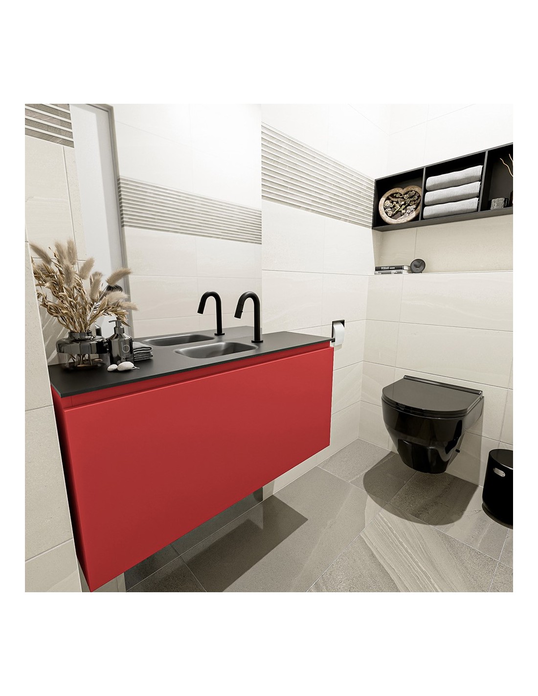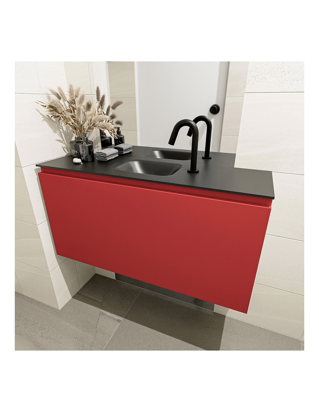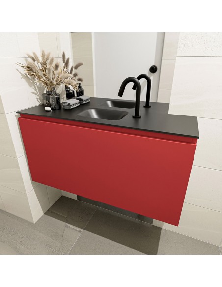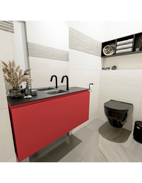 OLAN Komplet badmiljø centreret håndvask B100 cm MDF - Rød/Sort