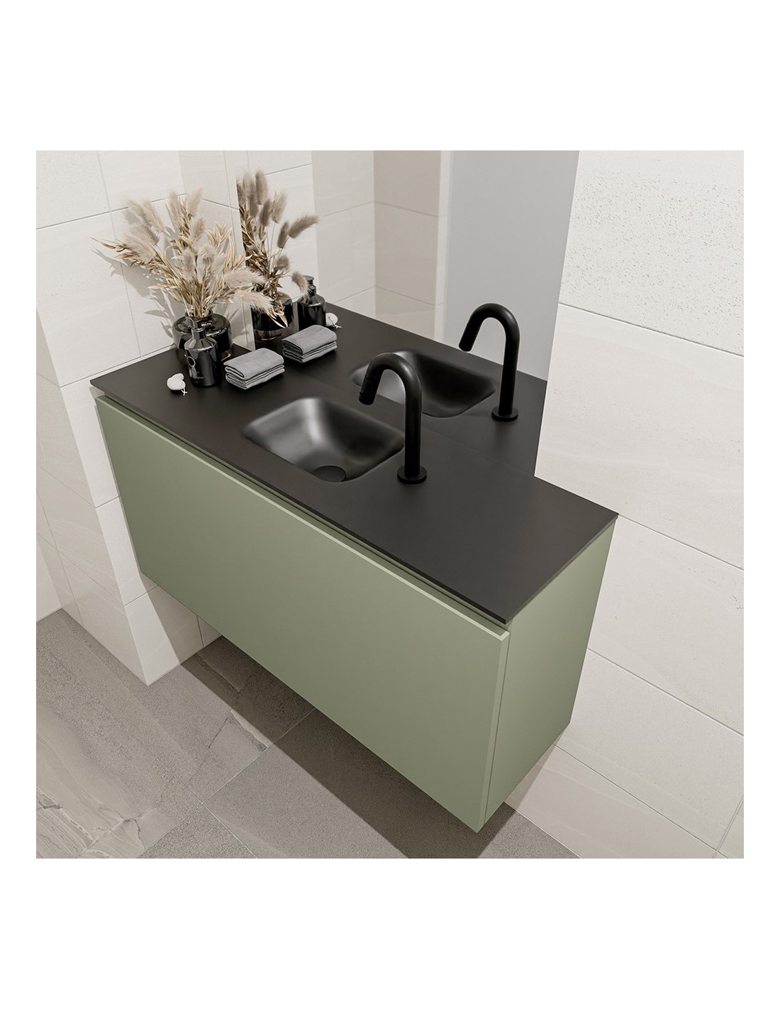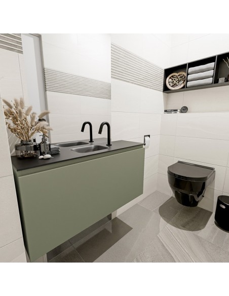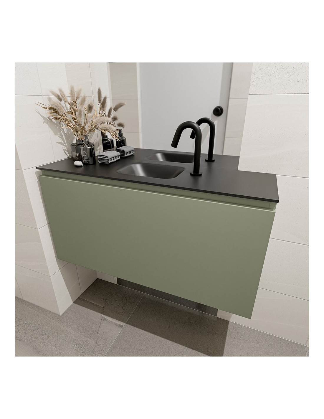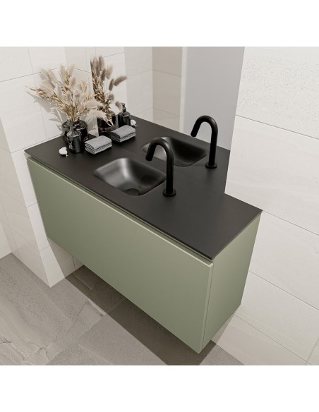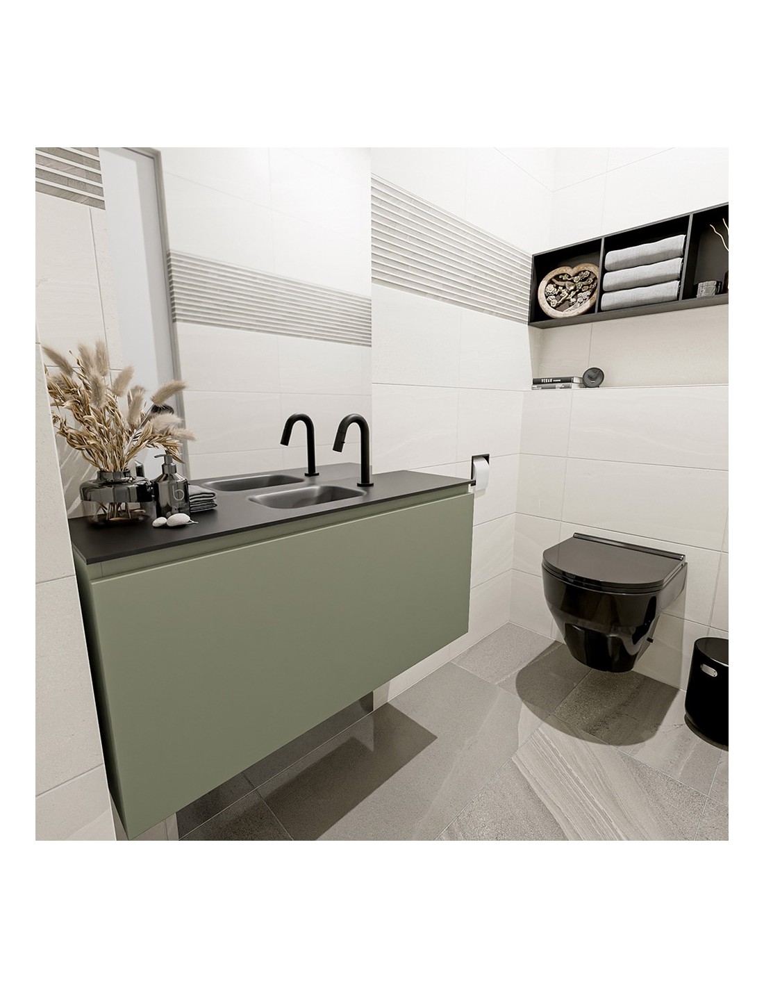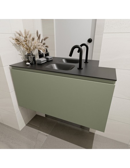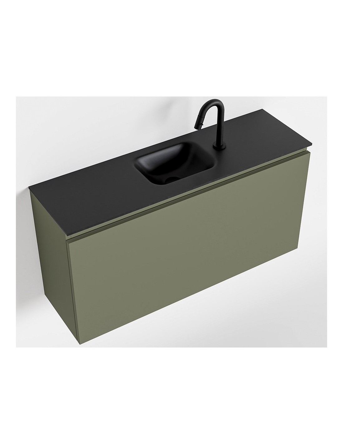 OLAN Komplet badmiljø centreret håndvask B100 cm MDF - Armygrøn/Sort