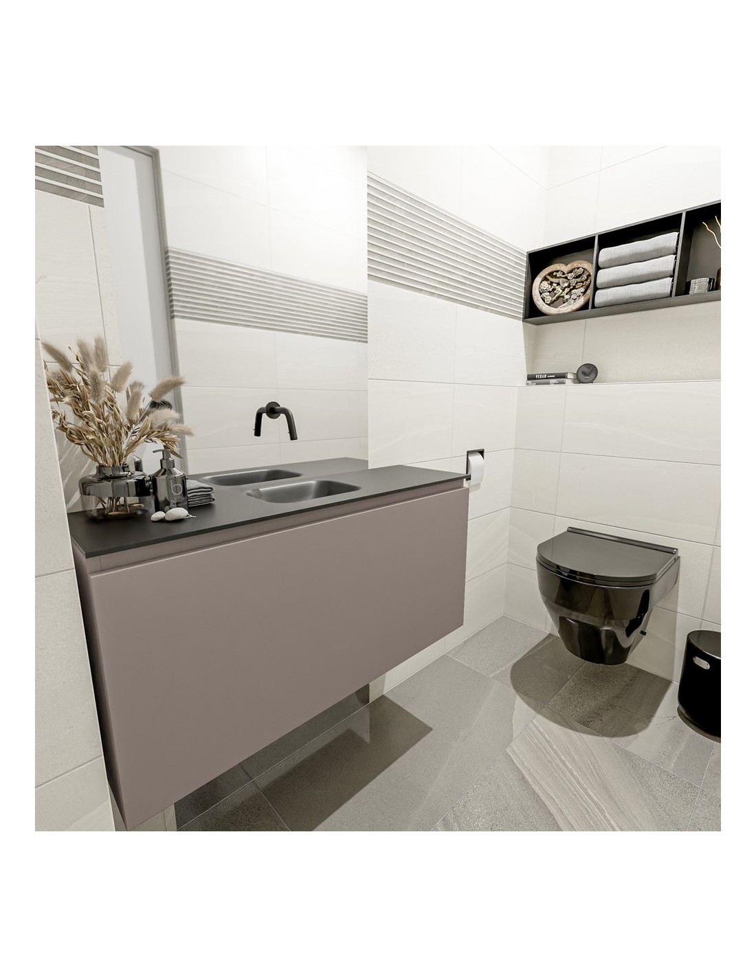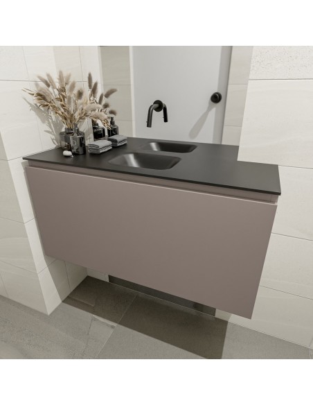 OLAN Komplet badmiljø centreret håndvask B100 cm MDF - Røg/Sort