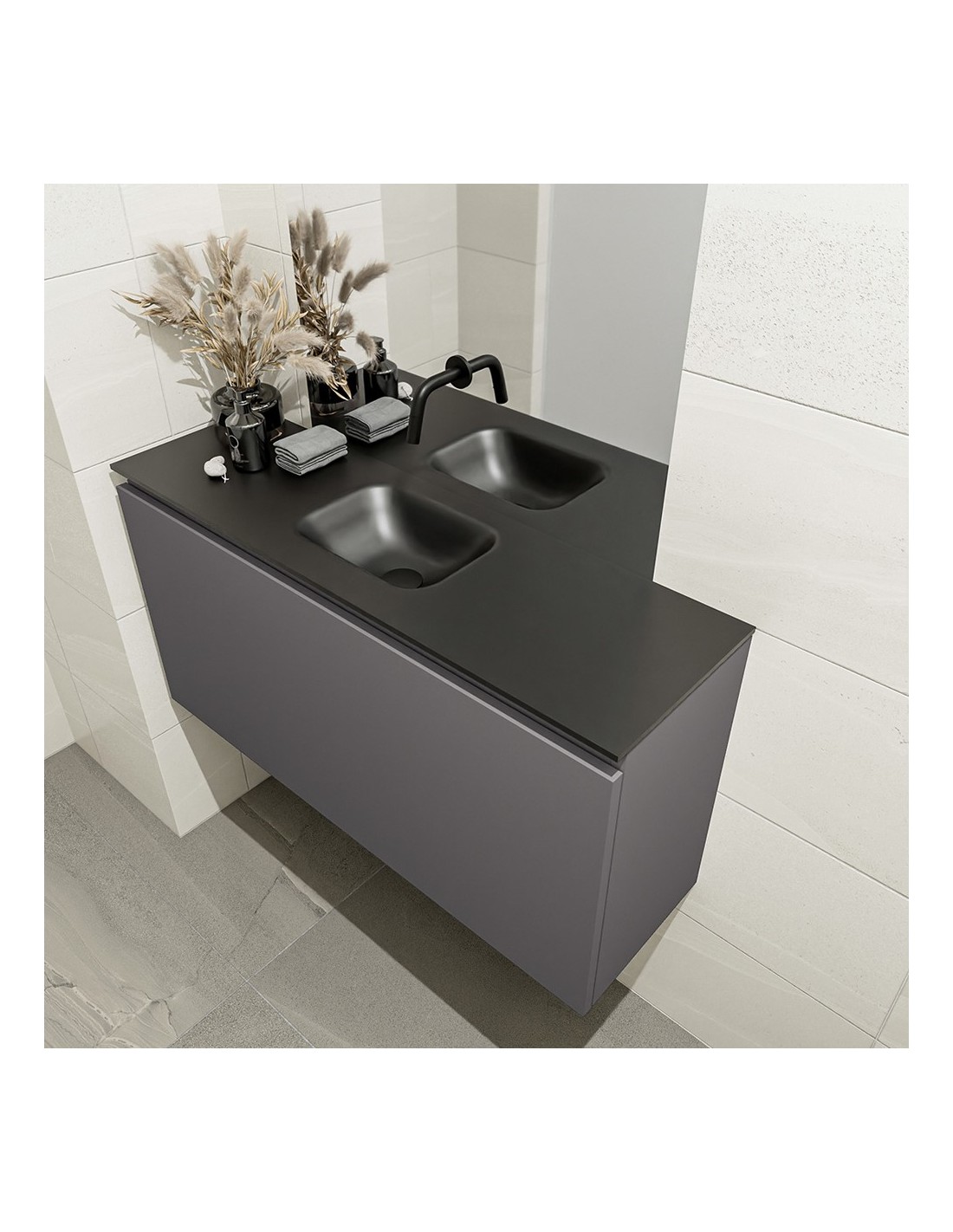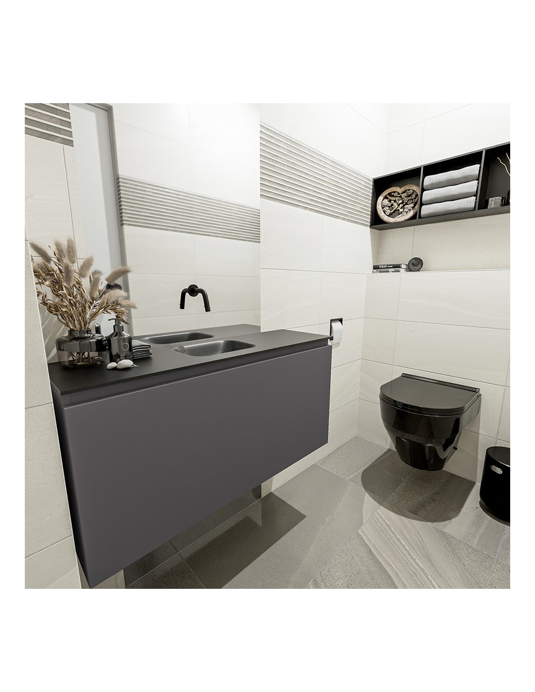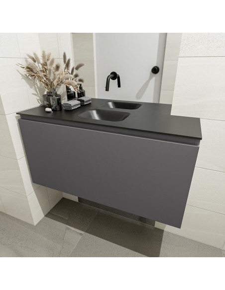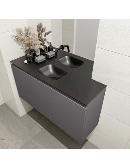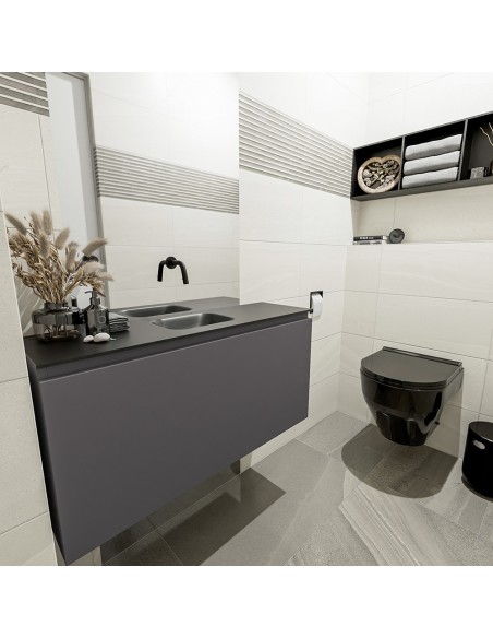OLAN Komplet badmiljø centreret håndvask B100 cm MDF - Mørkegrå/Sort