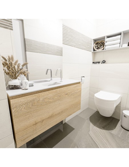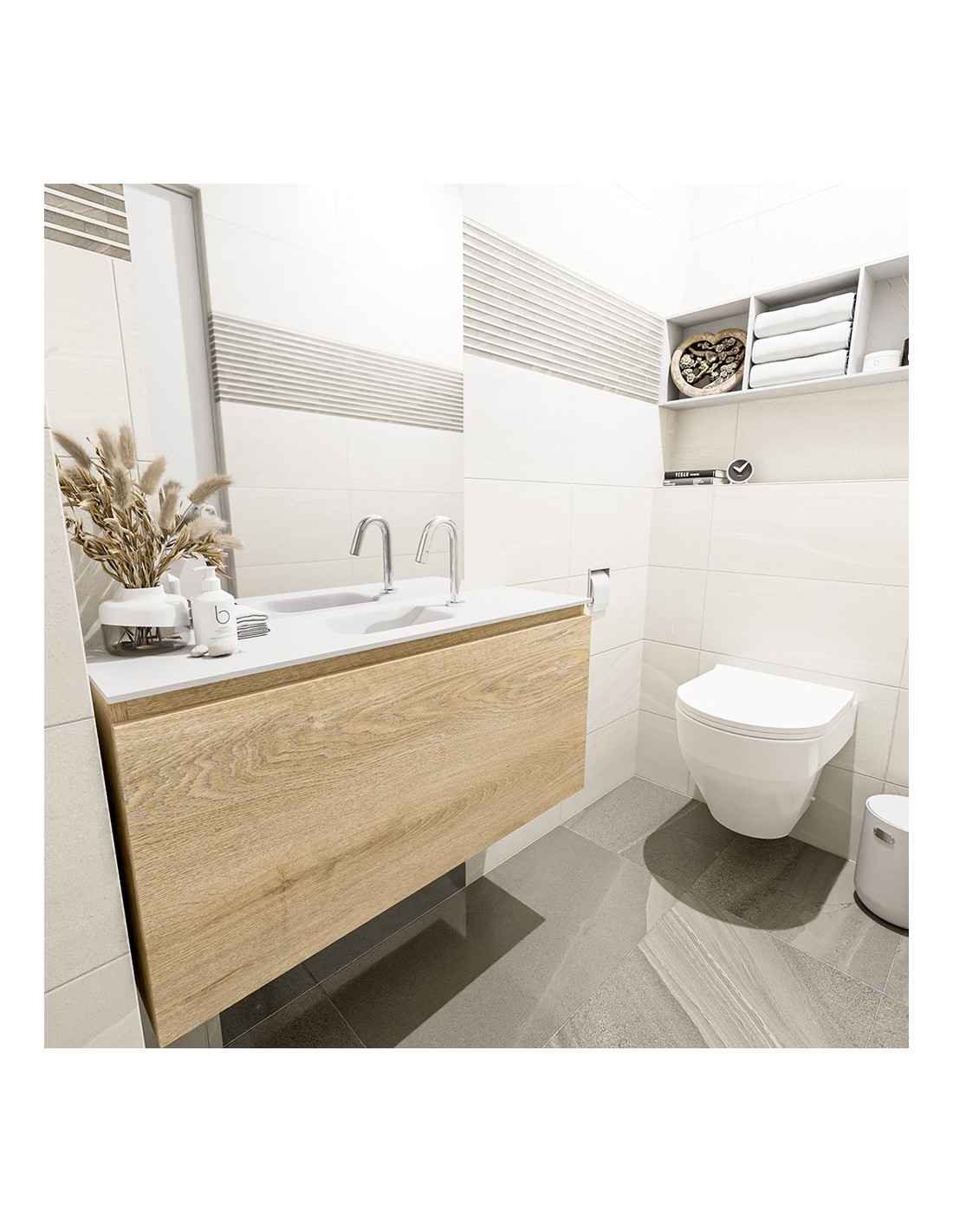OLAN Komplet badmiljø centreret håndvask B100 cm MDF - Vasket eg/Talkum