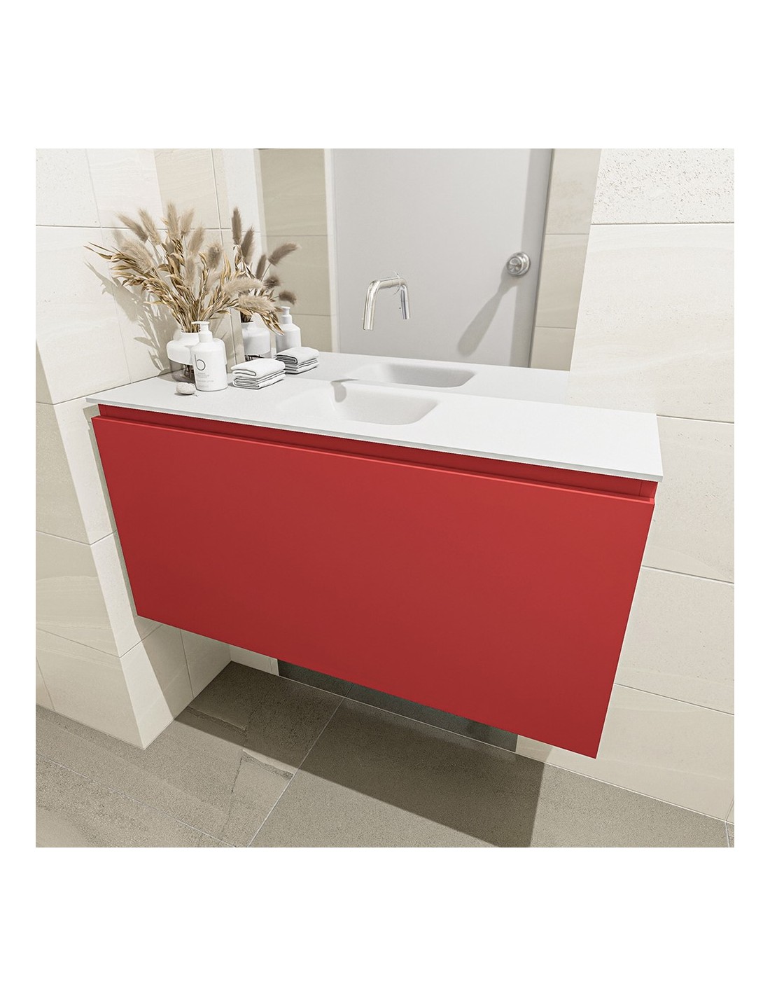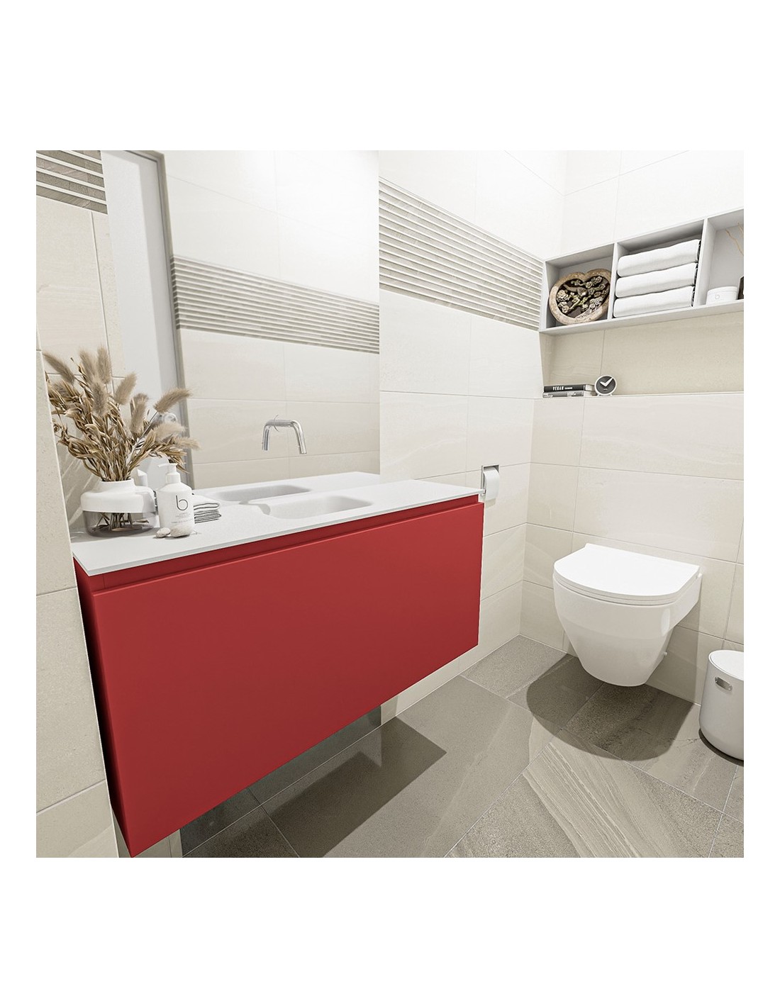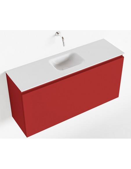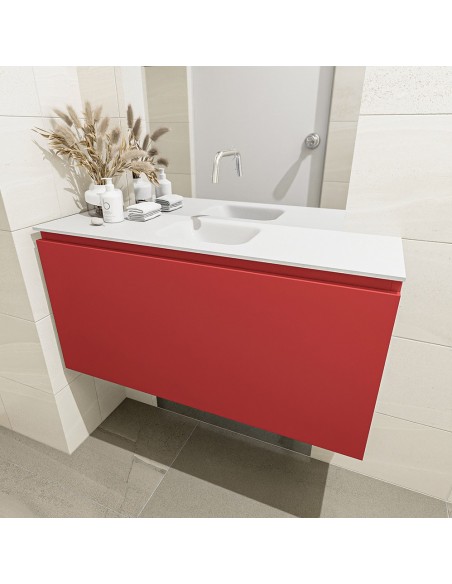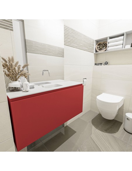 OLAN Komplet badmiljø centreret håndvask B100 cm MDF - Rød/Talkum