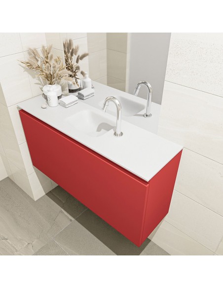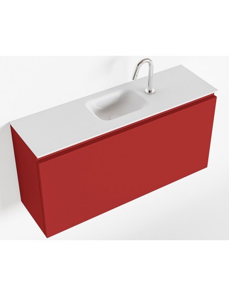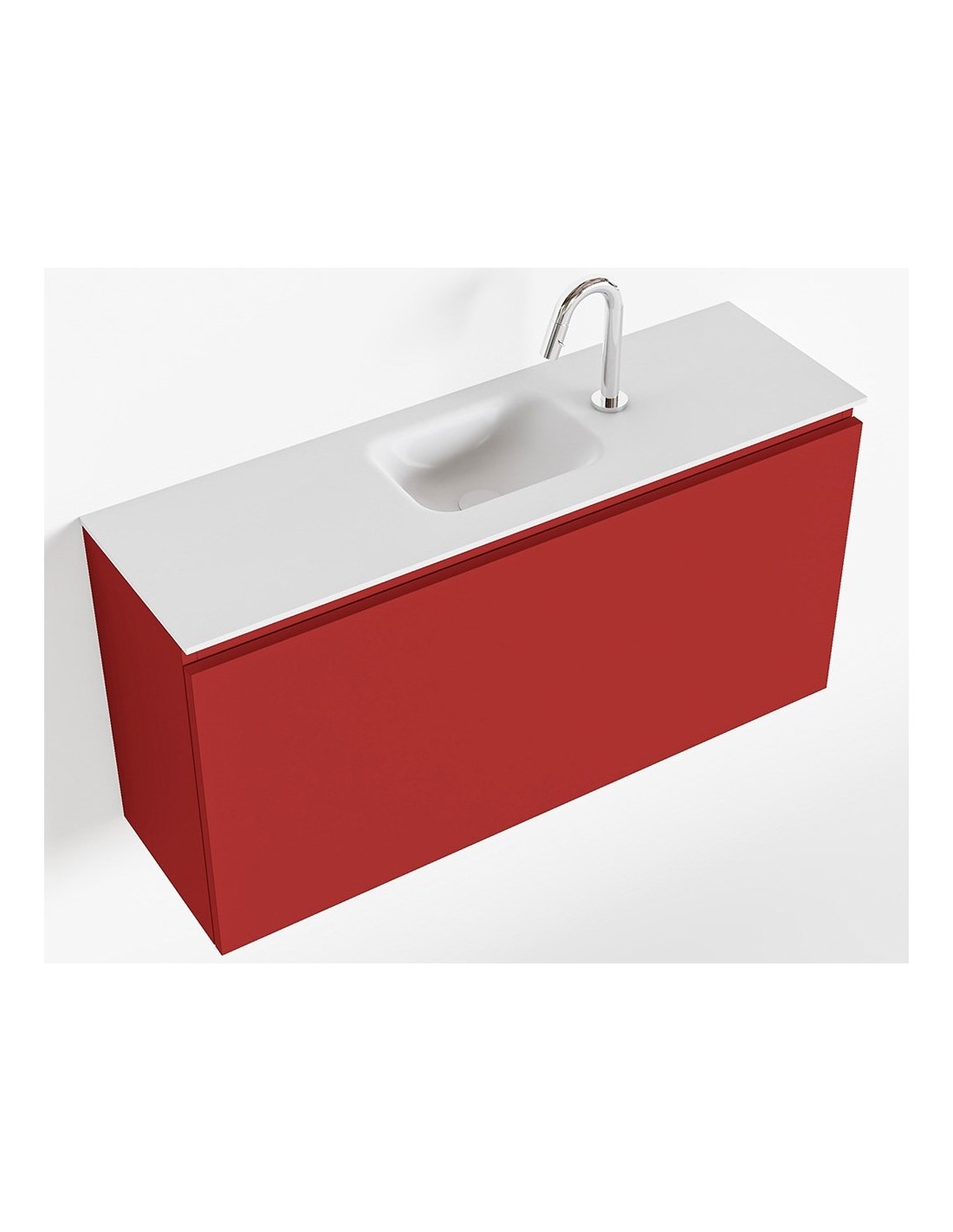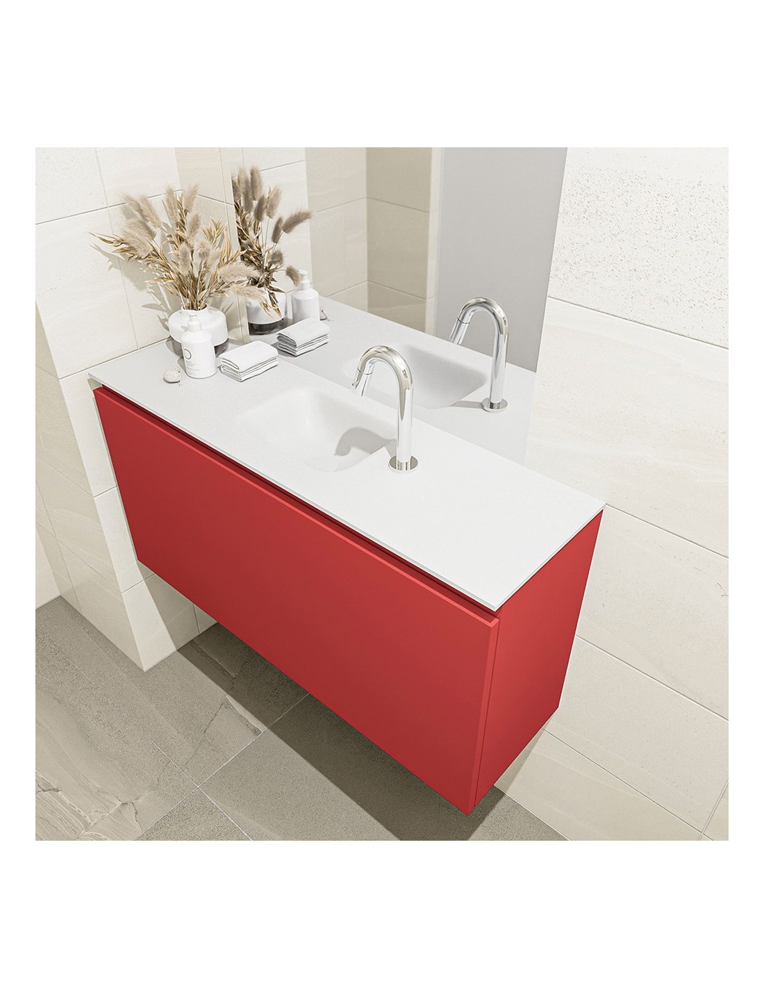 OLAN Komplet badmiljø centreret håndvask B100 cm MDF - Rød/Talkum