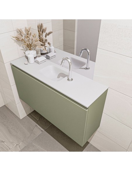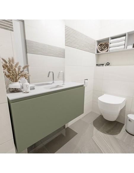 OLAN Komplet badmiljø centreret håndvask B100 cm MDF - Armygrøn/Talkum