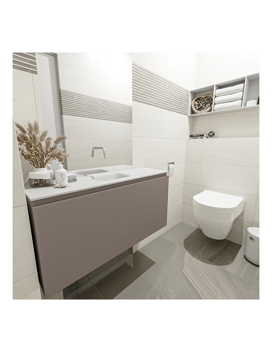 OLAN Komplet badmiljø centreret håndvask B100 cm MDF - Røg/Talkum