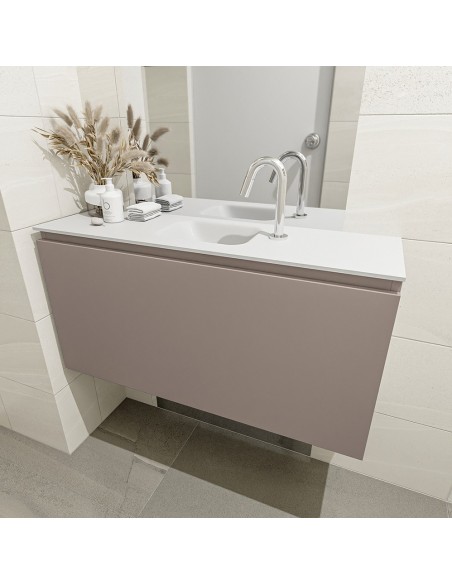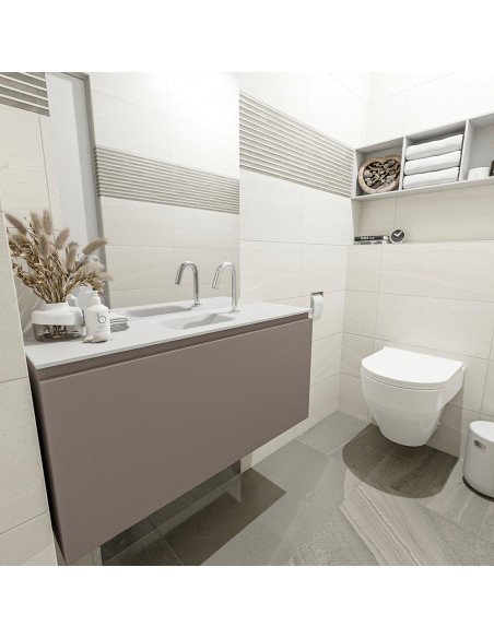 OLAN Komplet badmiljø centreret håndvask B100 cm MDF - Røg/Talkum