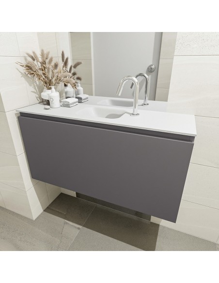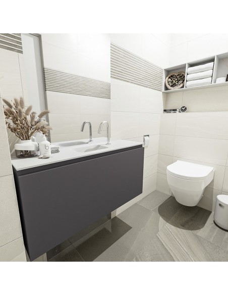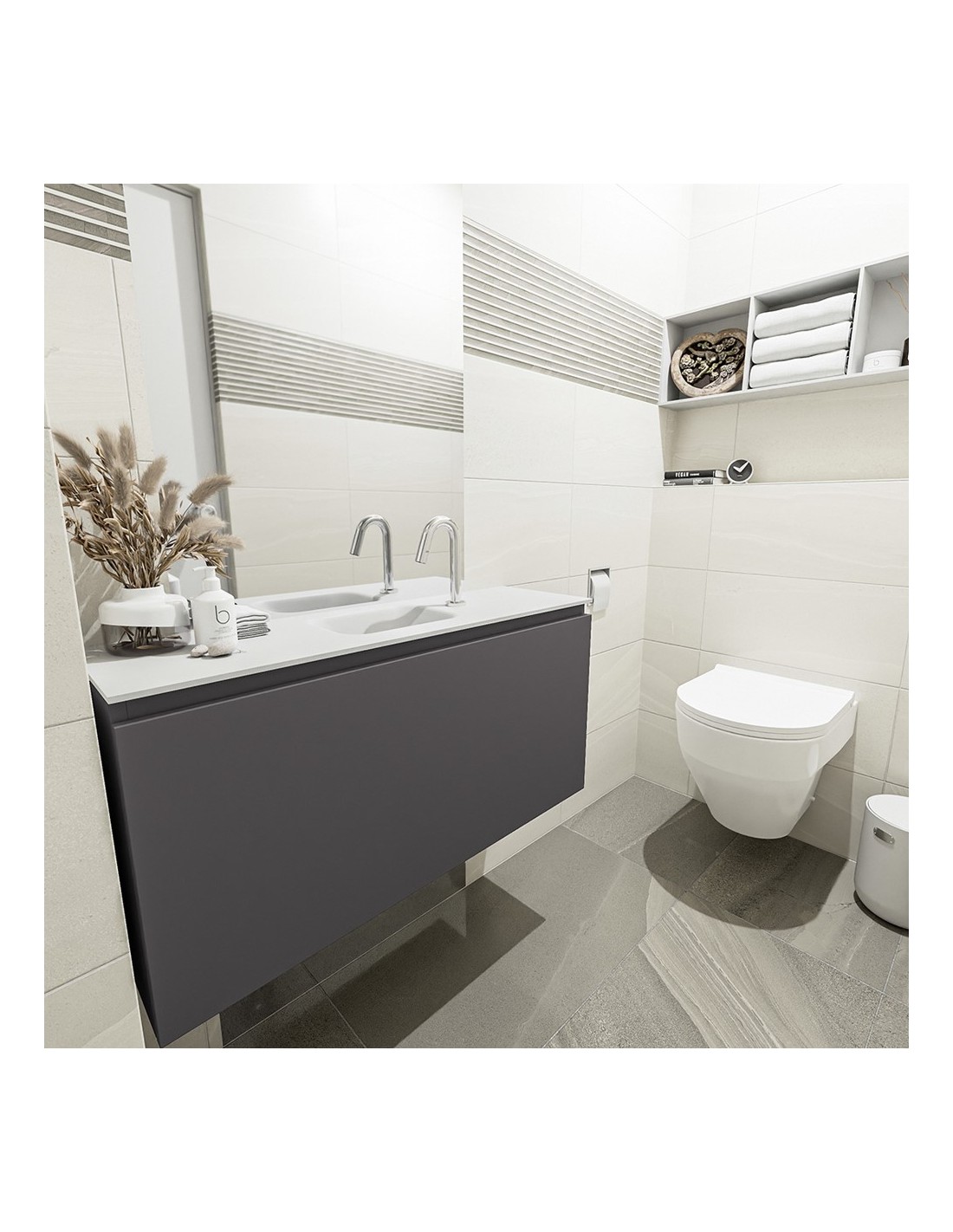 OLAN Komplet badmiljø centreret håndvask B100 cm MDF - Mørkegrå/Talkum