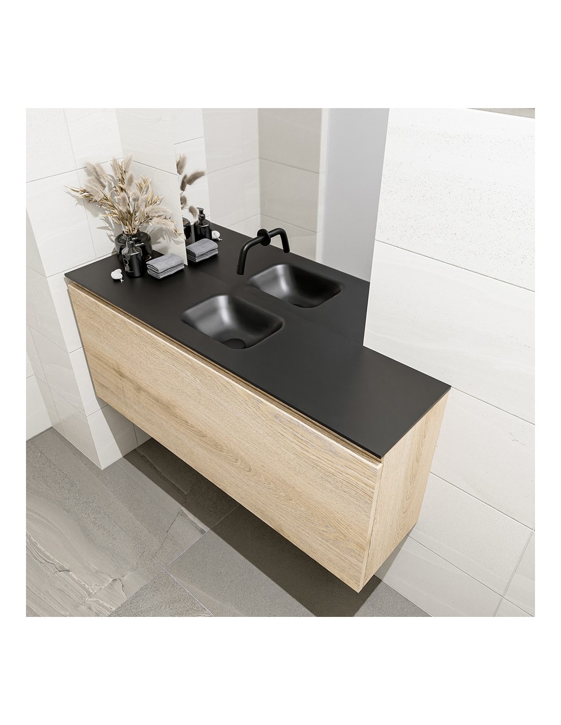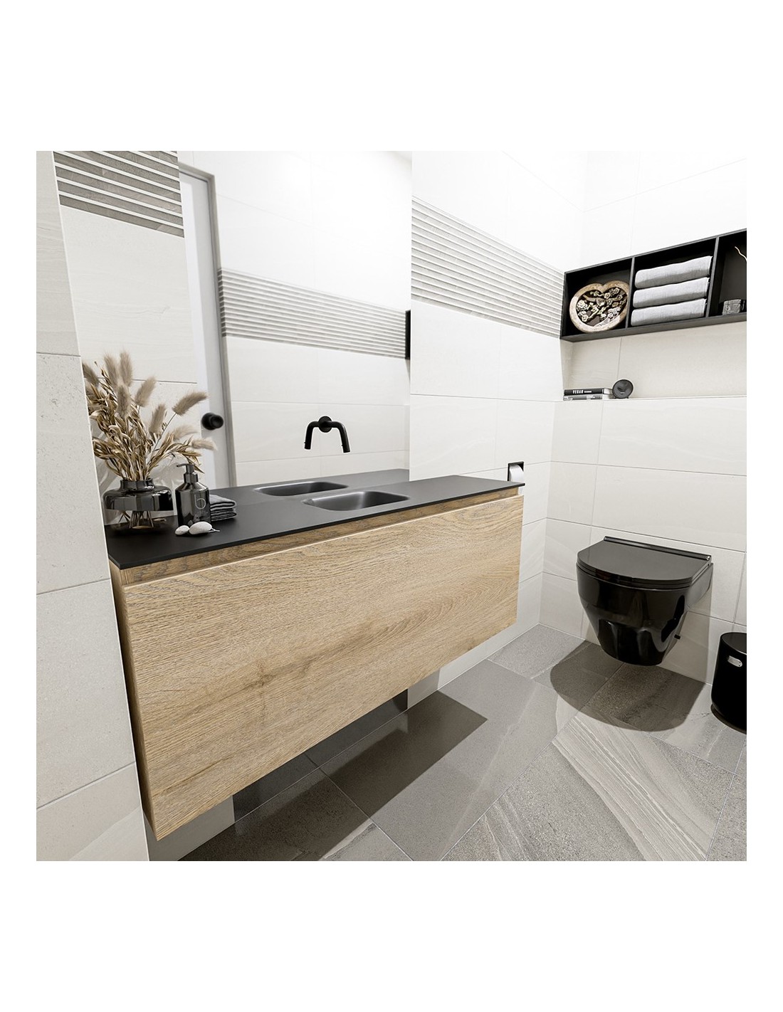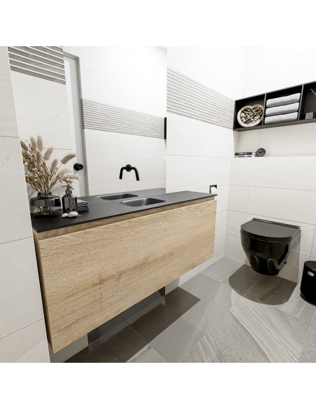 OLAN Komplet badmiljø centreret håndvask B120 cm MDF - Vasket eg/Sort