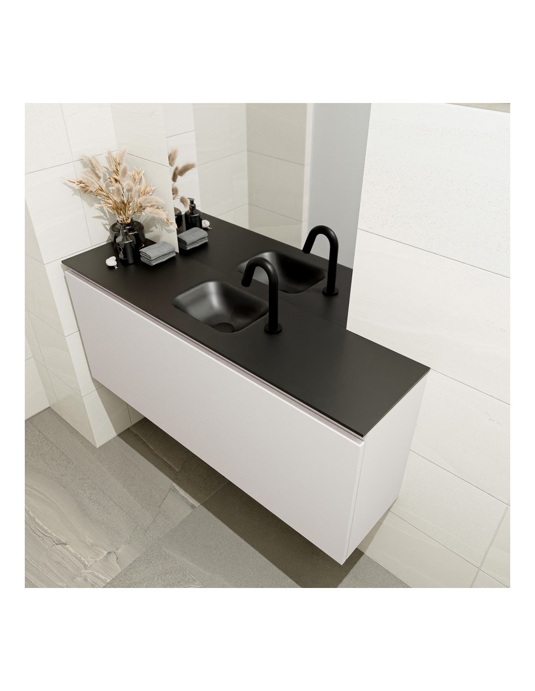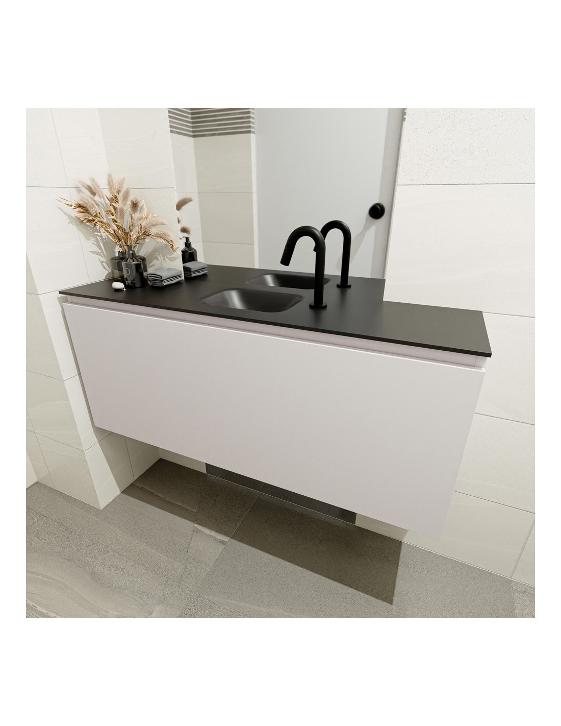 OLAN Komplet badmiljø centreret håndvask B120 cm MDF - Linned/Sort