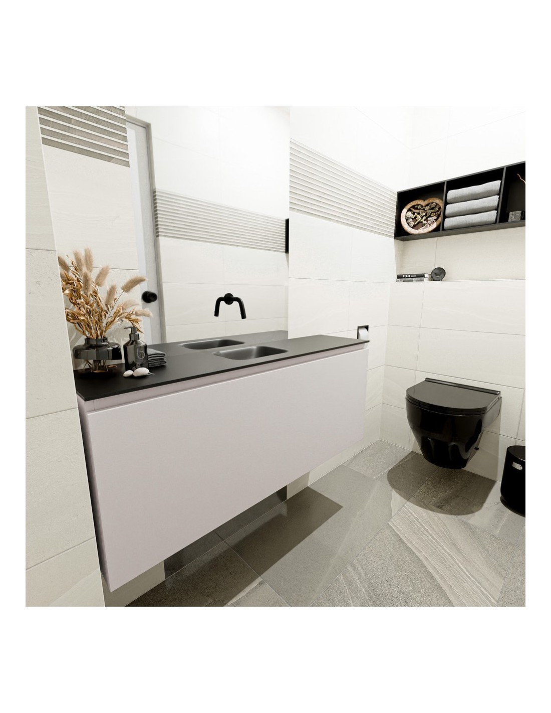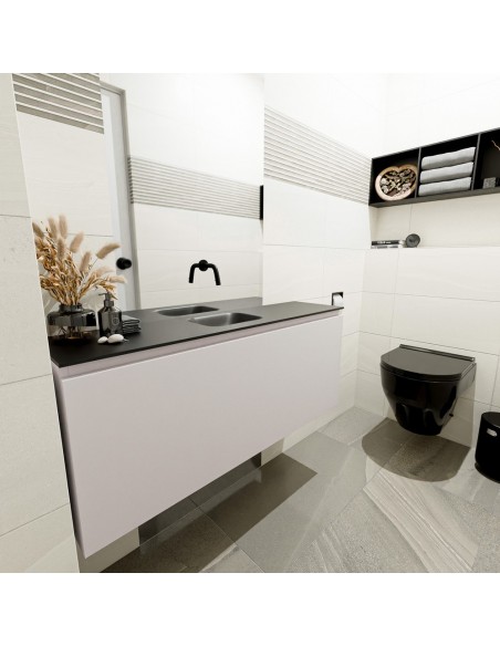 OLAN Komplet badmiljø centreret håndvask B120 cm MDF - Linned/Sort
