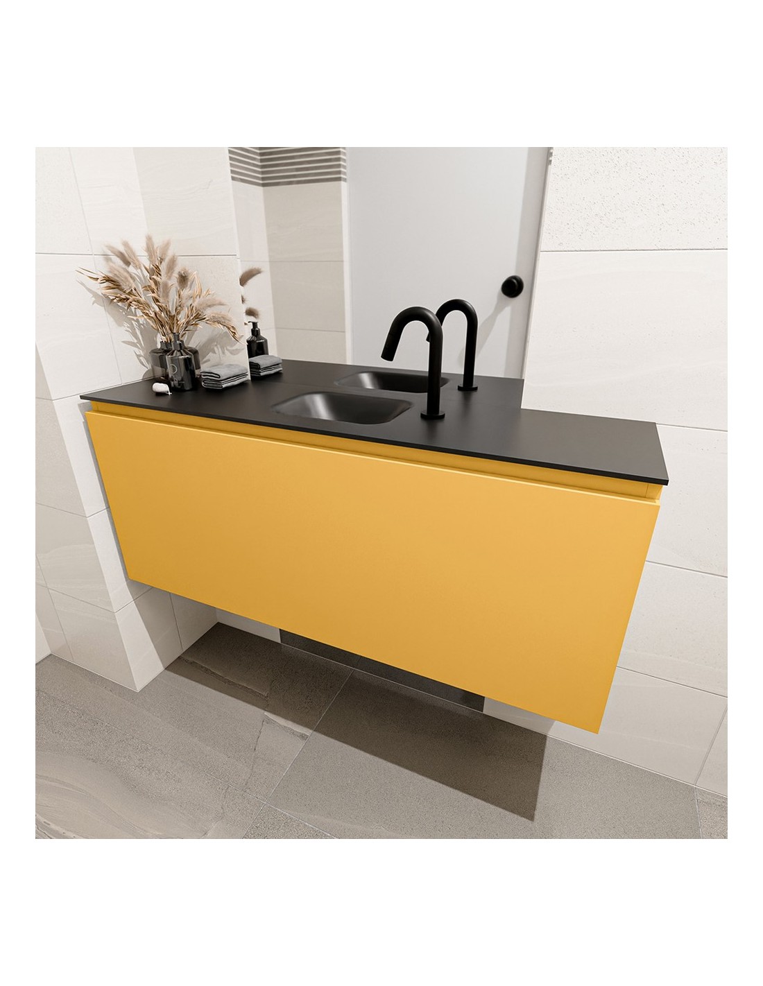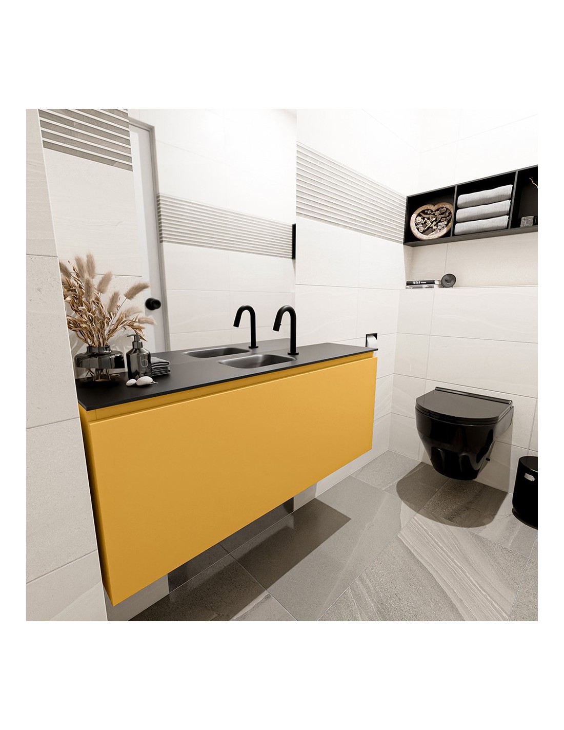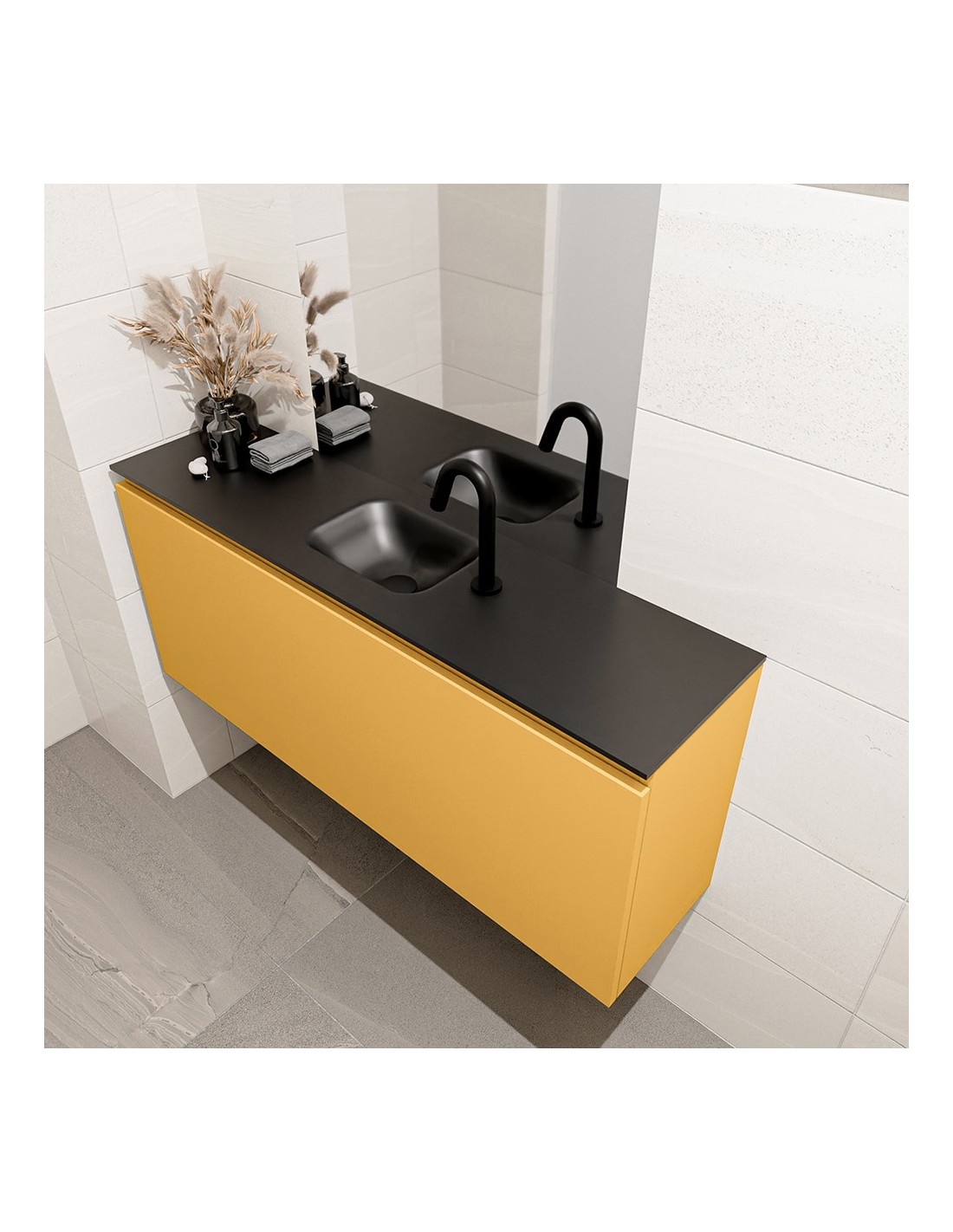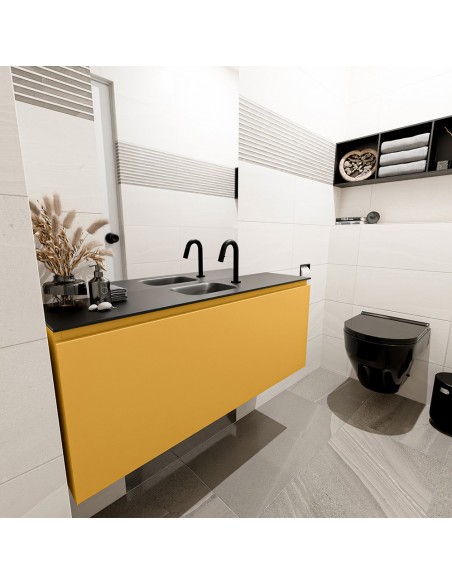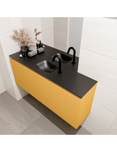 OLAN Komplet badmiljø centreret håndvask B120 cm MDF - Okker/Sort