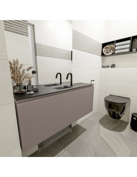 OLAN Komplet badmiljø centreret håndvask B120 cm MDF - Røg/Sort