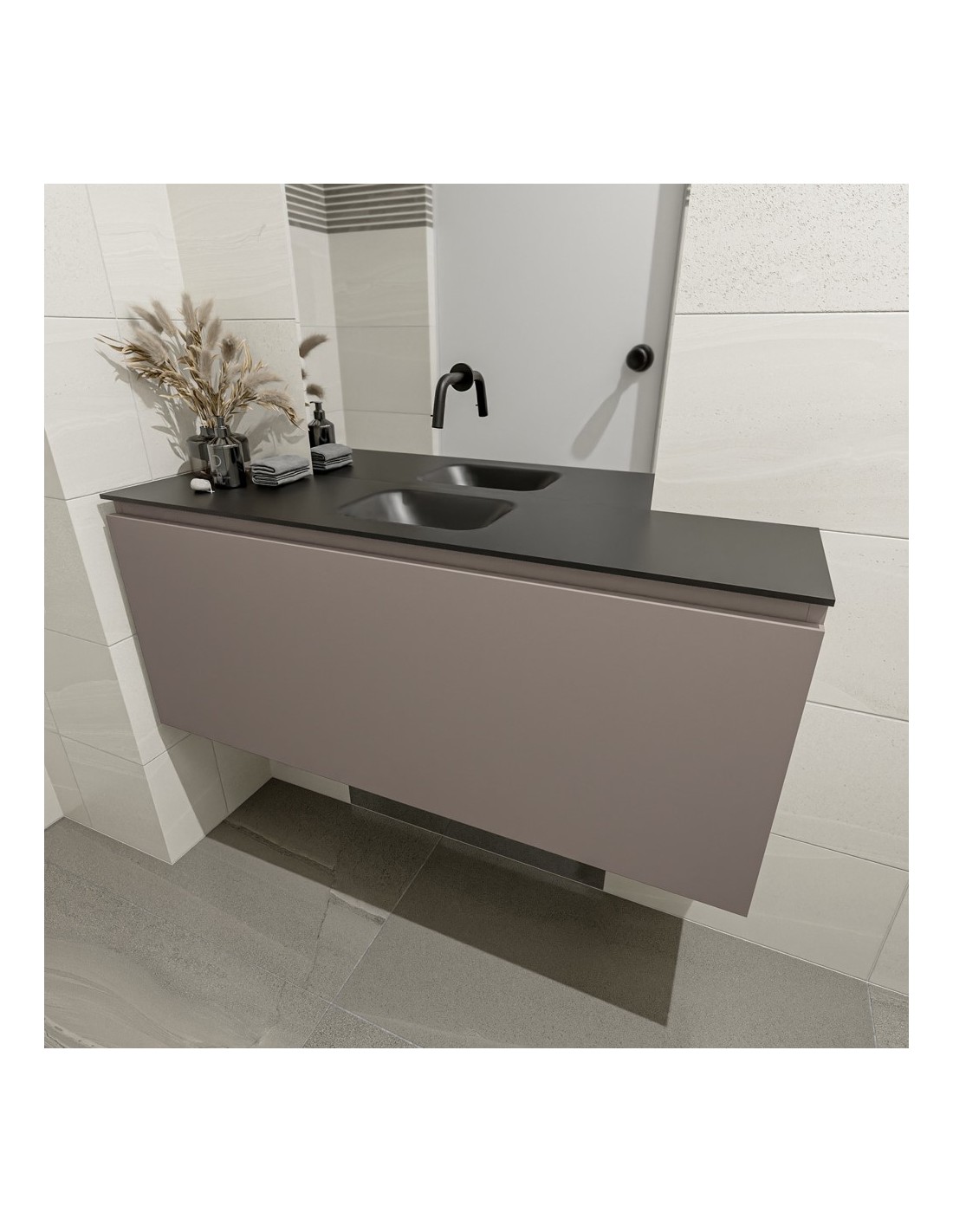 OLAN Komplet badmiljø centreret håndvask B120 cm MDF - Røg/Sort