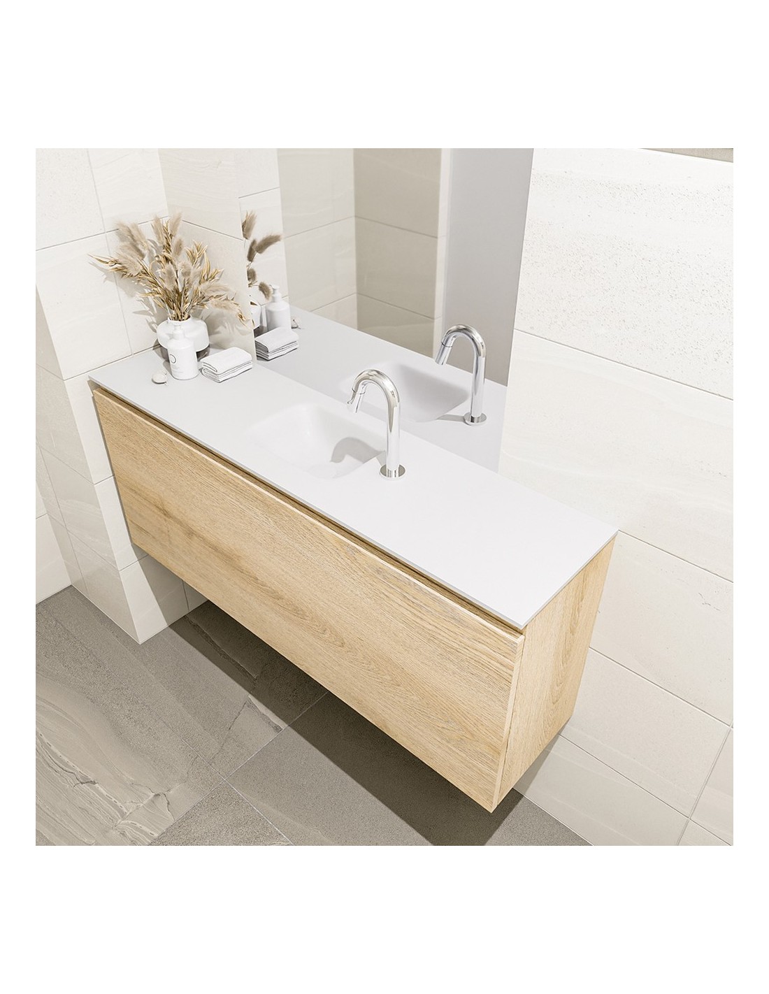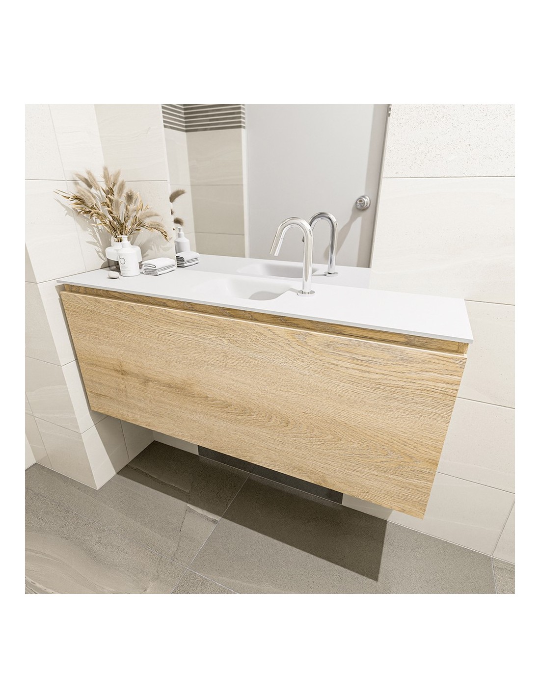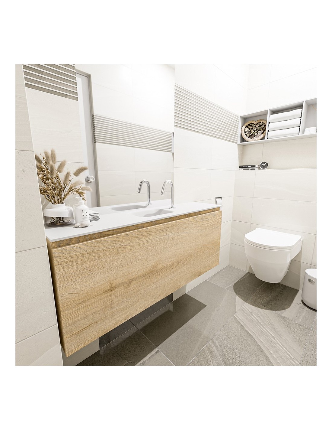 OLAN Komplet badmiljø centreret håndvask B120 cm MDF - Vasket eg/Talkum