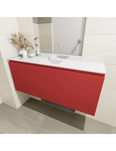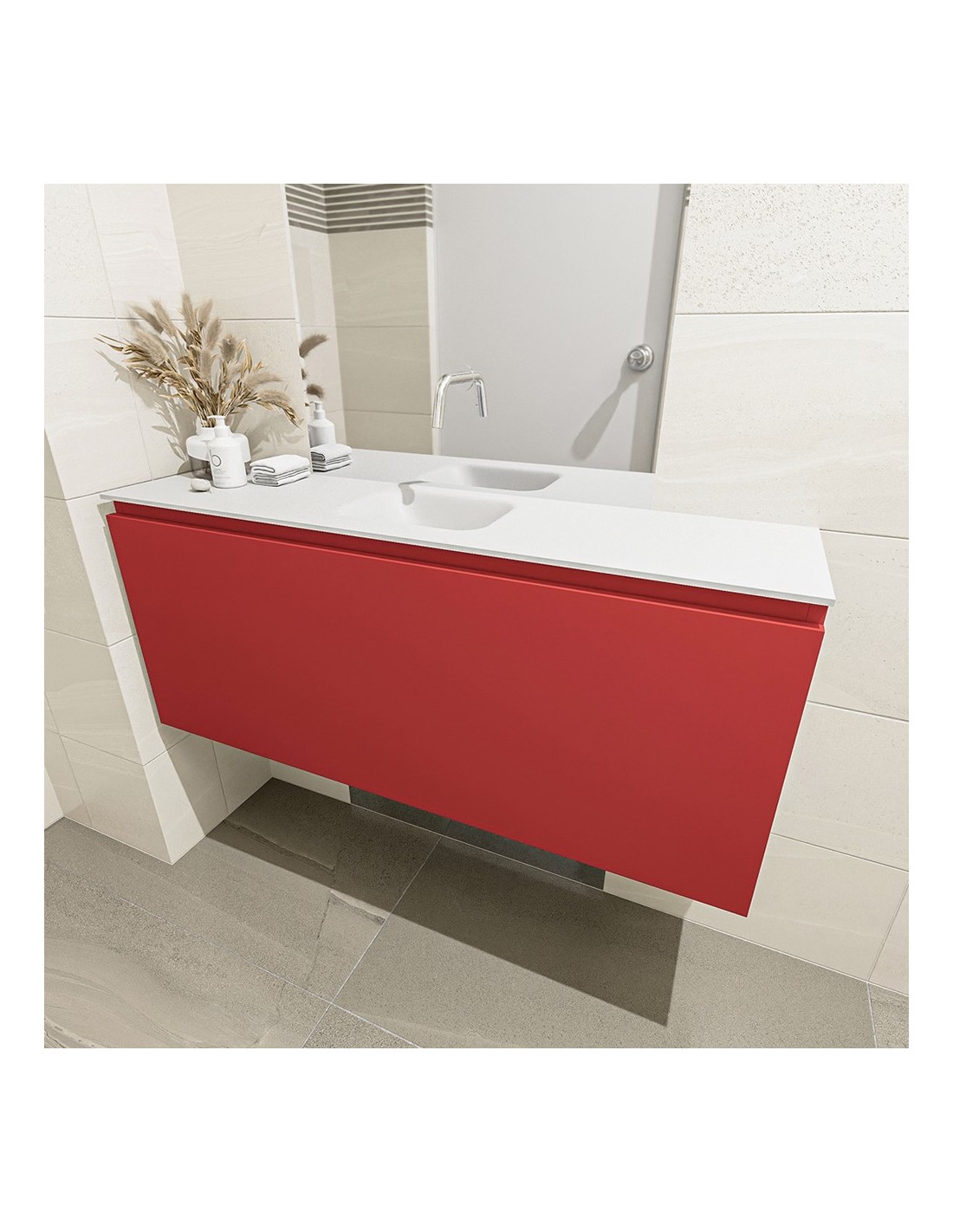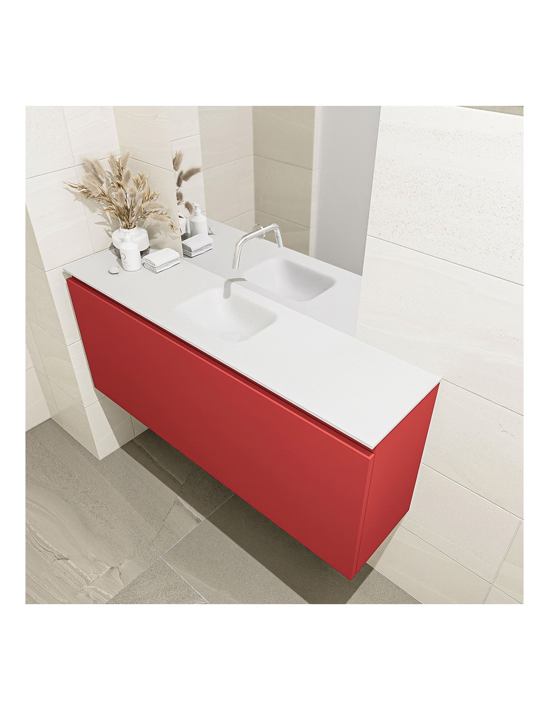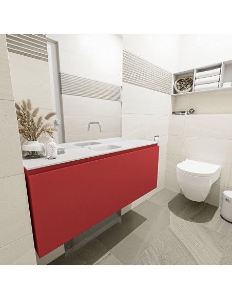 OLAN Komplet badmiljø centreret håndvask B120 cm MDF - Rød/Talkum