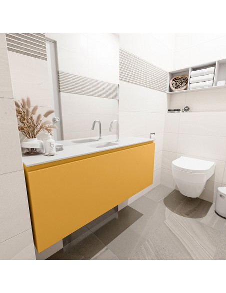 OLAN Komplet badmiljø centreret håndvask B120 cm MDF - Okker/Talkum