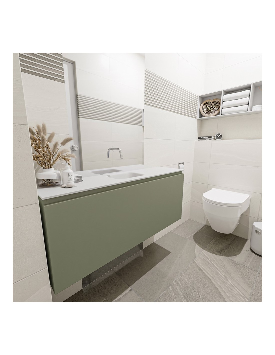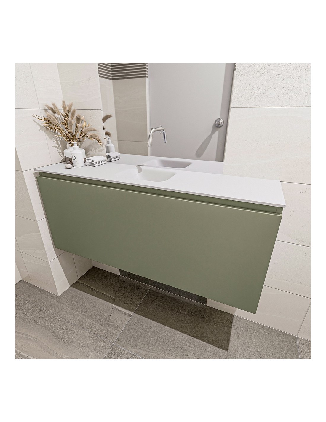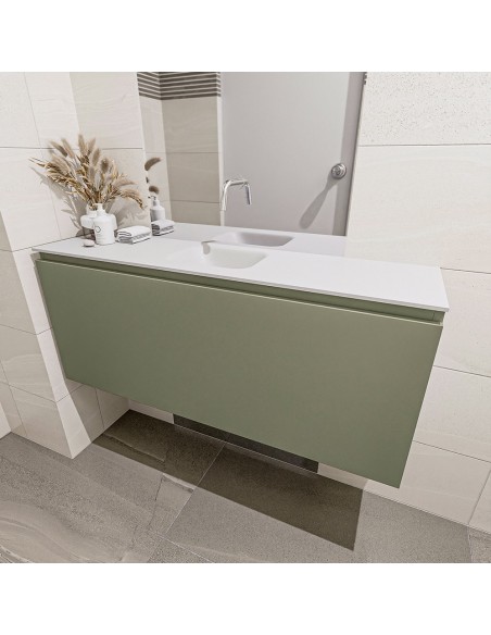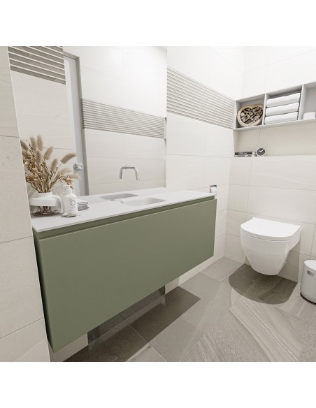 OLAN Komplet badmiljø centreret håndvask B120 cm MDF - Armygrøn/Talkum
