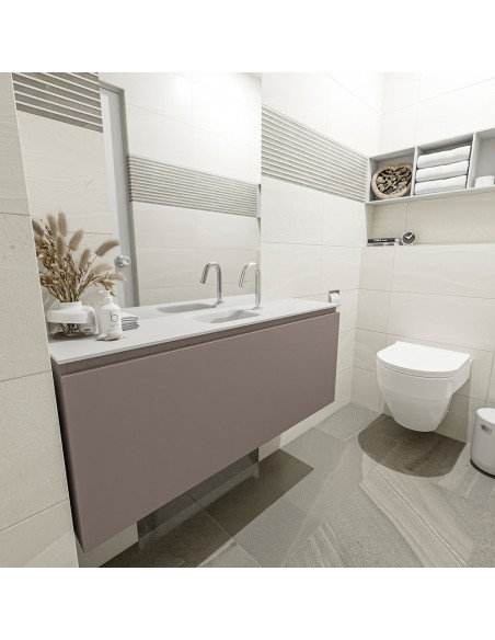OLAN Komplet badmiljø centreret håndvask B120 cm MDF - Røg/Talkum