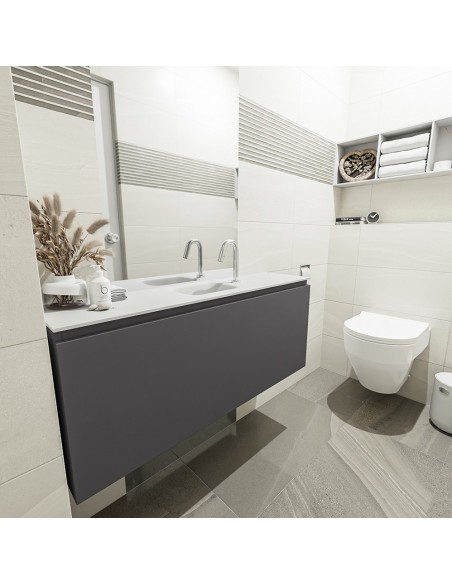 OLAN Komplet badmiljø centreret håndvask B120 cm MDF - Mørkegrå/Talkum