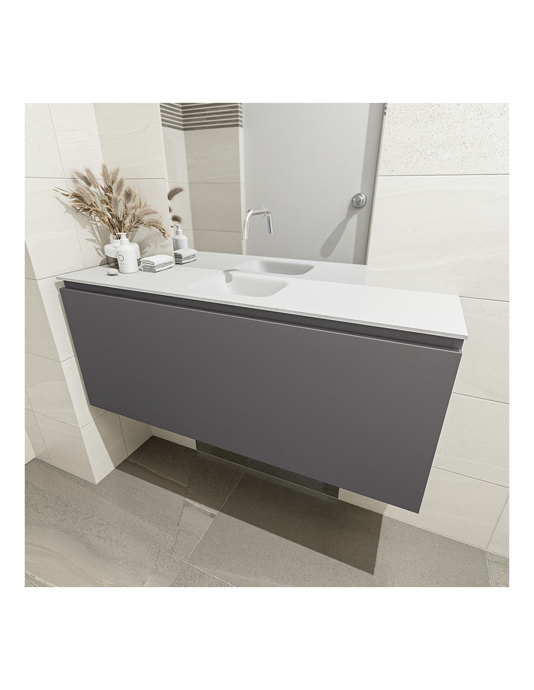OLAN Komplet badmiljø centreret håndvask B120 cm MDF - Mørkegrå/Talkum
