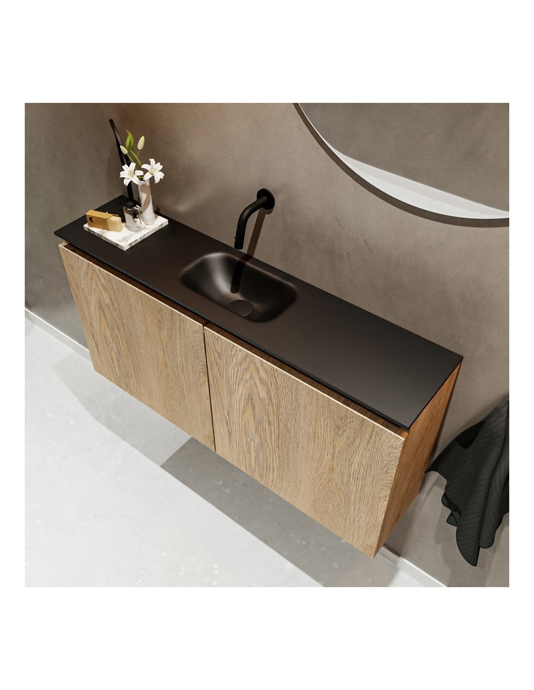 TURE Komplet badmiljø centreret håndvask B100 cm MDF - Vasket eg/Sort