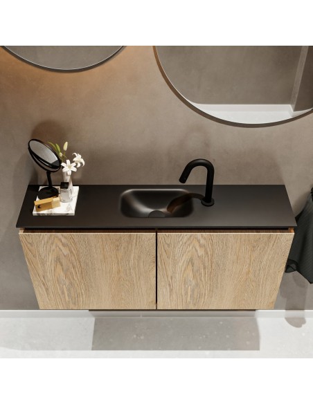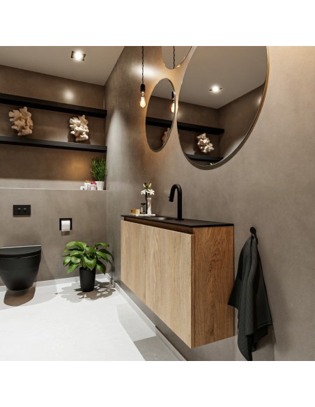 TURE Komplet badmiljø centreret håndvask B100 cm MDF - Vasket eg/Sort