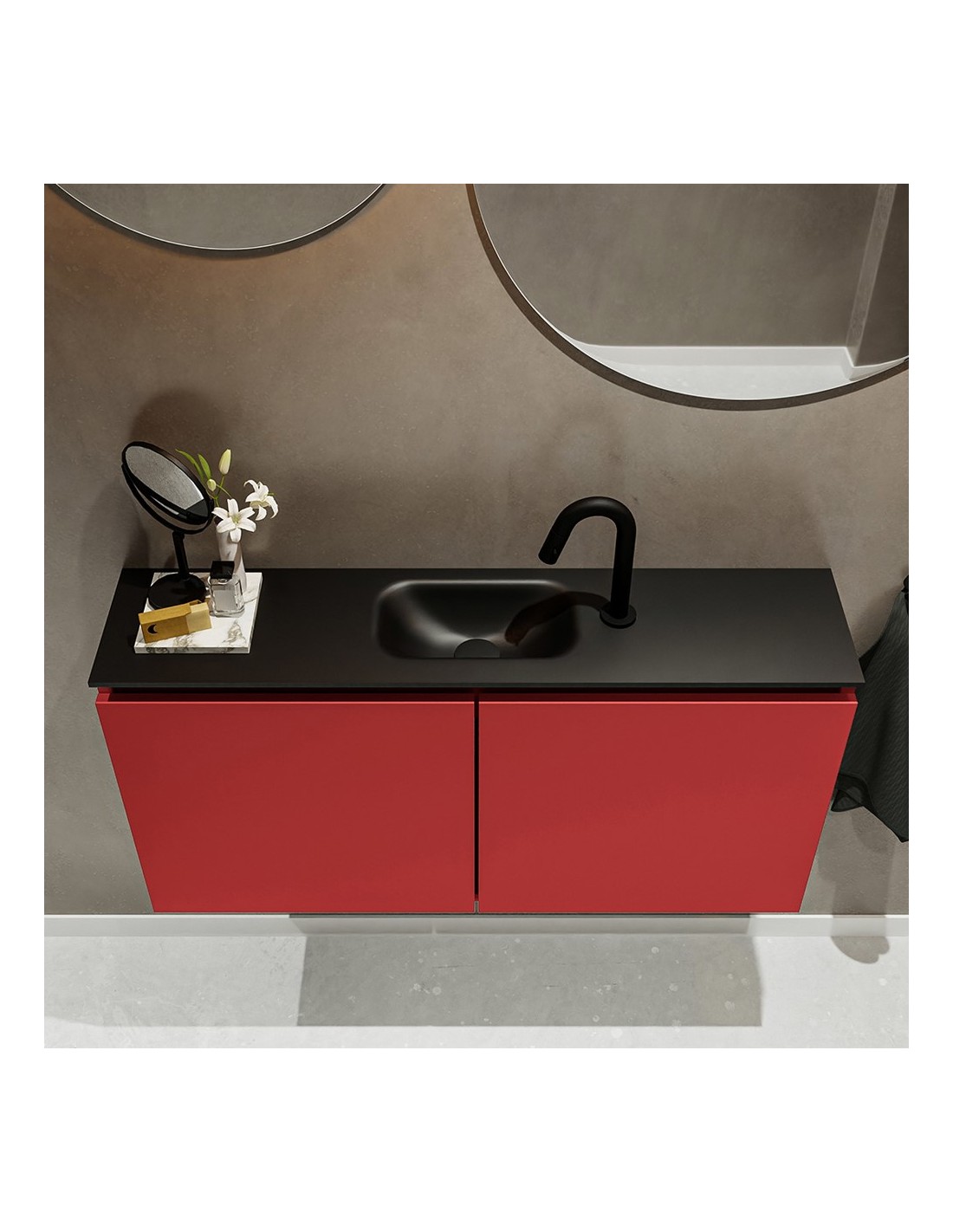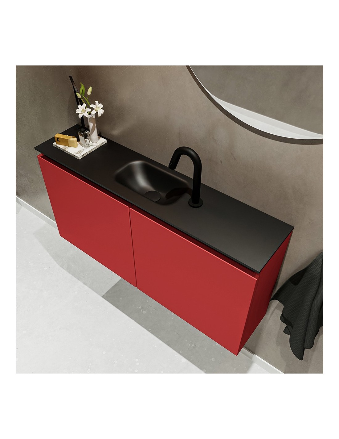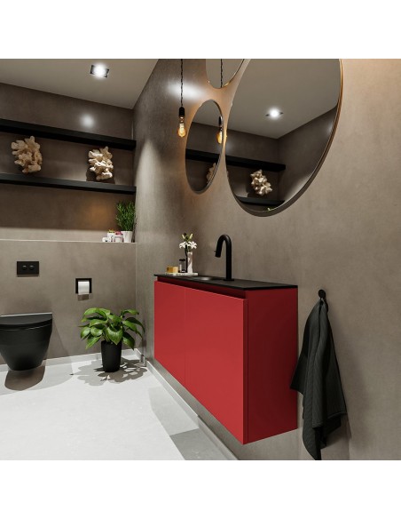 TURE Komplet badmiljø centreret håndvask B100 cm MDF - Rød/Sort