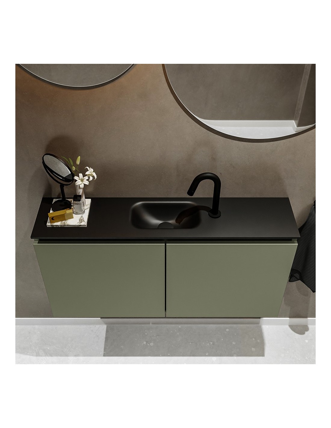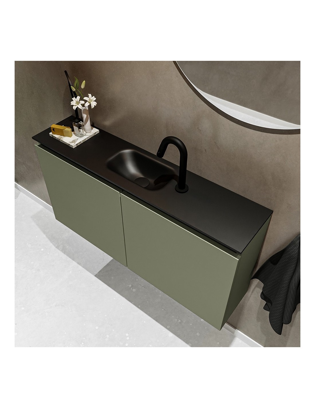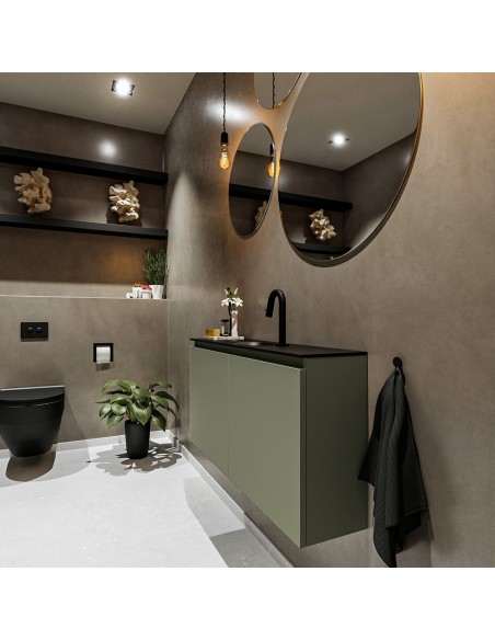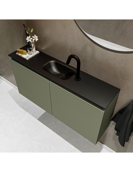 TURE Komplet badmiljø centreret håndvask B100 cm MDF - Armygrøn/Sort