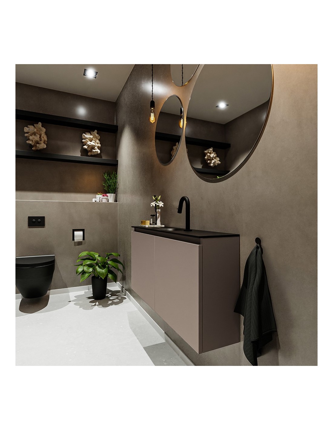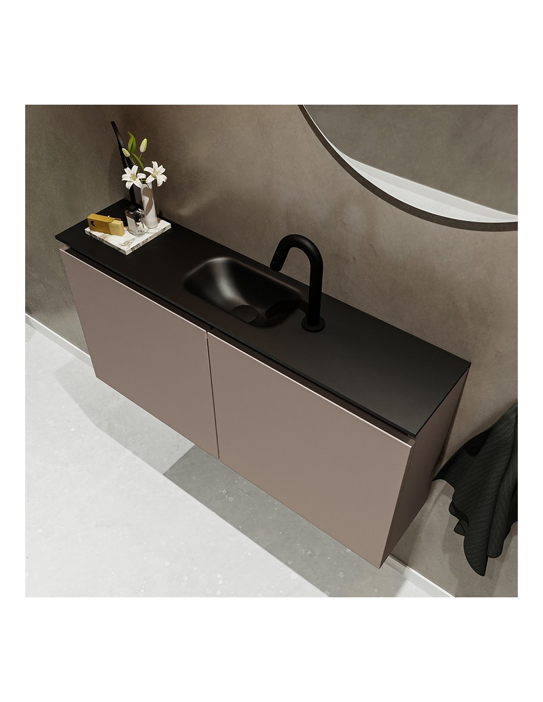 TURE Komplet badmiljø centreret håndvask B100 cm MDF - Røg/Sort