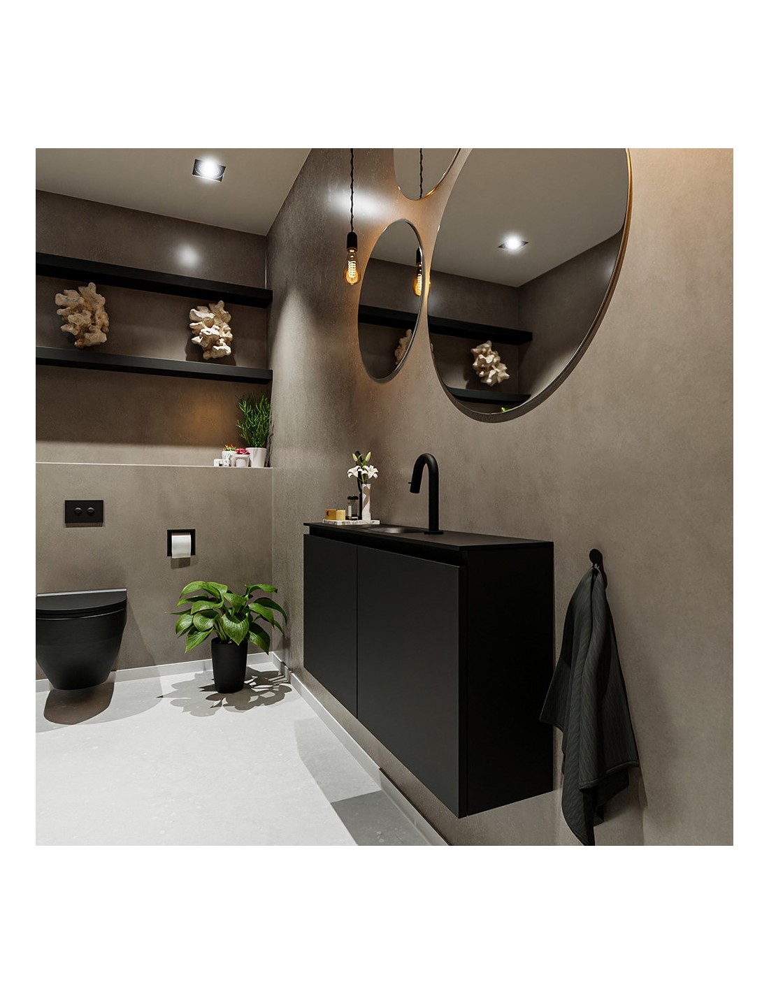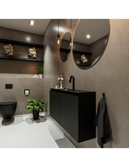 TURE Komplet badmiljø centreret håndvask B100 cm MDF - Sort/Sort
