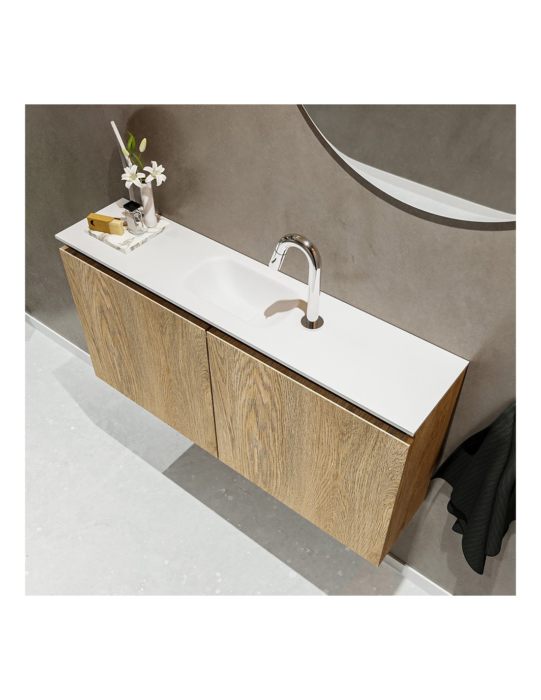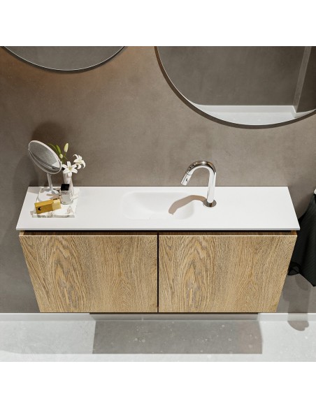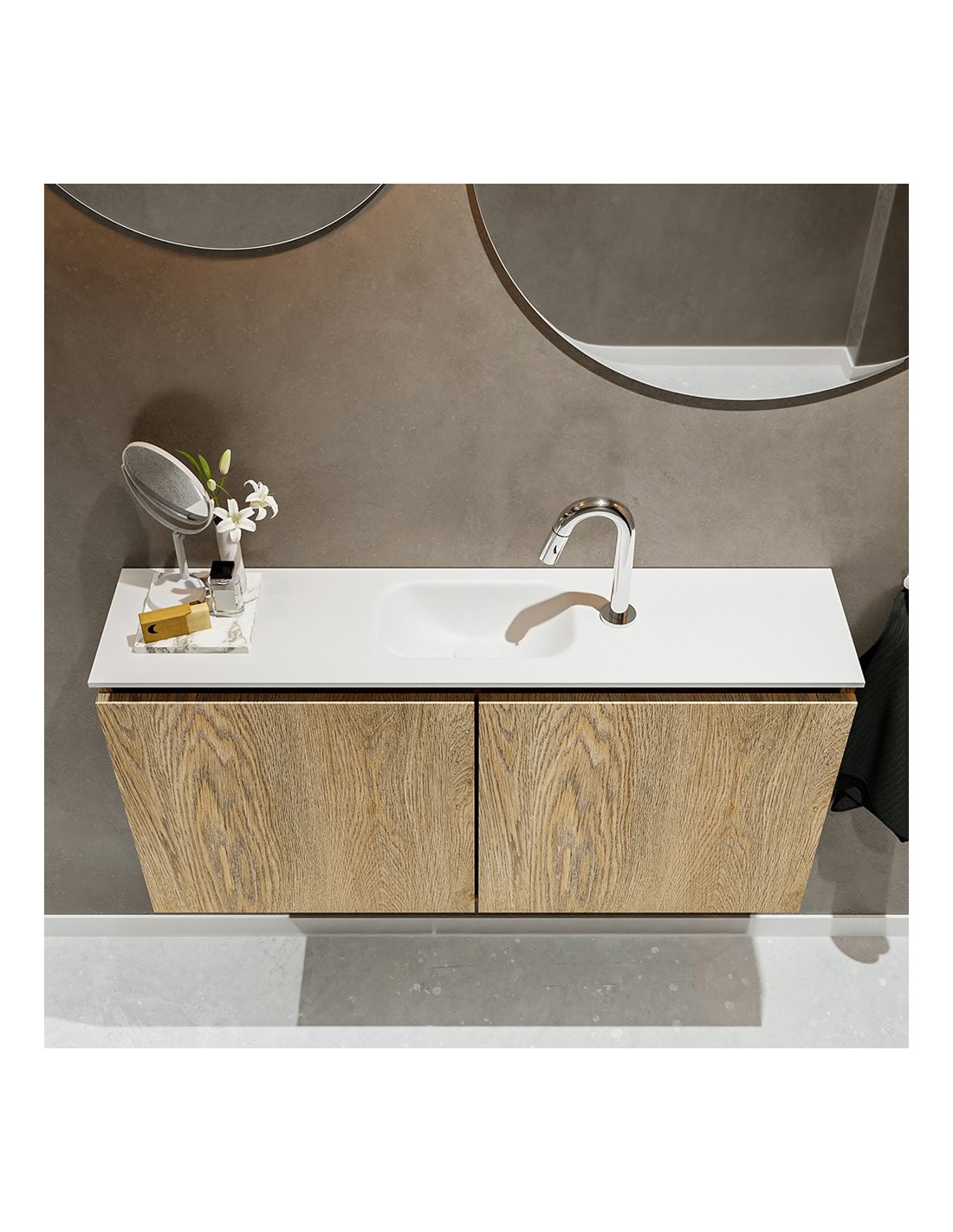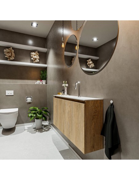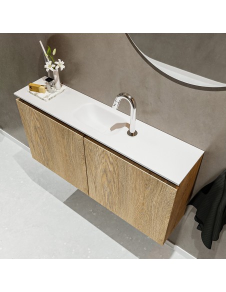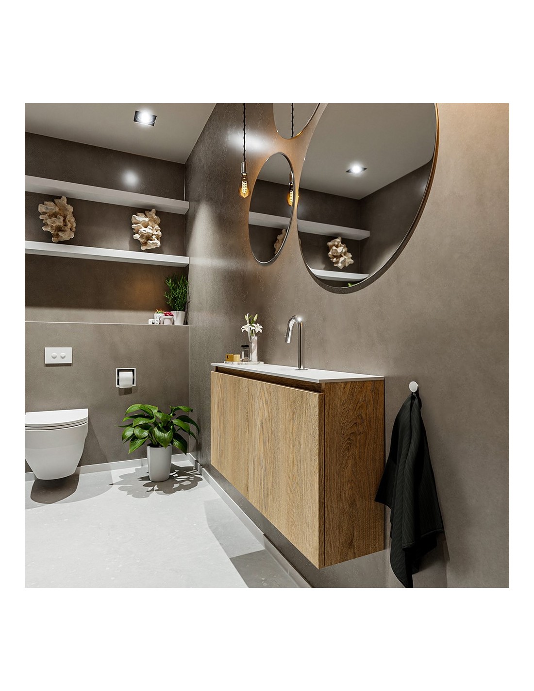 TURE Komplet badmiljø centreret håndvask B100 cm MDF - Vasket eg/Talkum